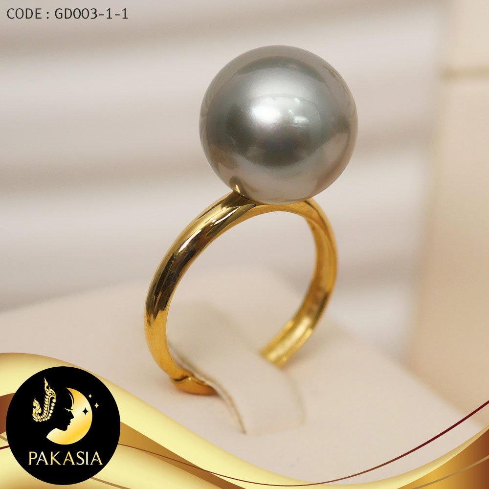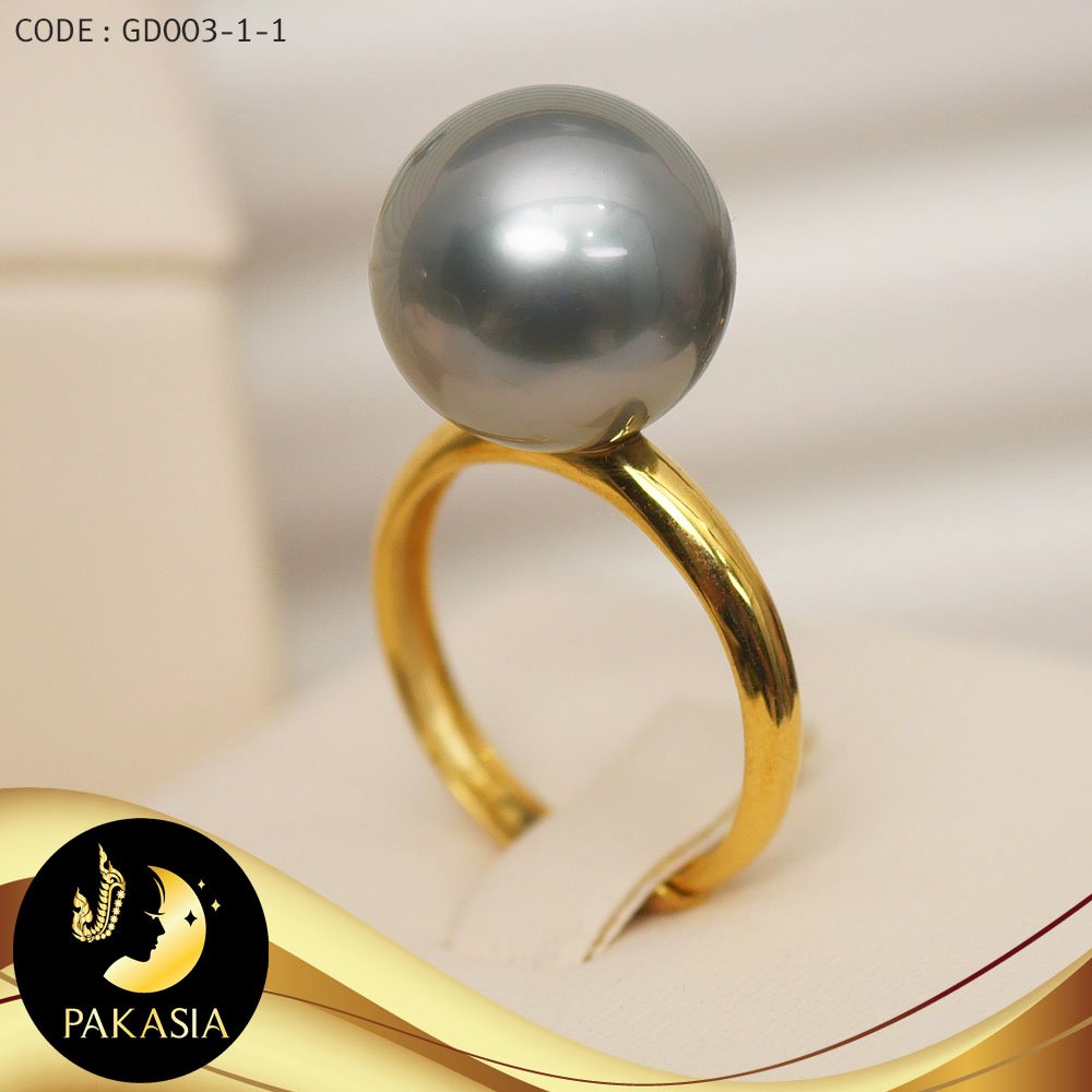 แหวนมุกตาฮิติ เม็ดเดี่ยว มุกตาฮิติ สีเทา ทรงกลม ขนาด 12.5-13 mm เกรด AAA ตัวเรือนแหวนเกลี้ยง ทองแท้ 18K น้ำหนักทอง 1.9g เม็ดมุกมีรอยธรรมชาติ ±3% สินค้าทุกชิ้นมีใบรับประกันมุกแท้ (Certificate of Guarantee) เม็ดมุกแต่ละเม็ดมีลักษณะเฉพาะตัว อาจมีรูปทรง ขนาด และสีต่างกันเล็กน้อย จากภาพโฆษณา