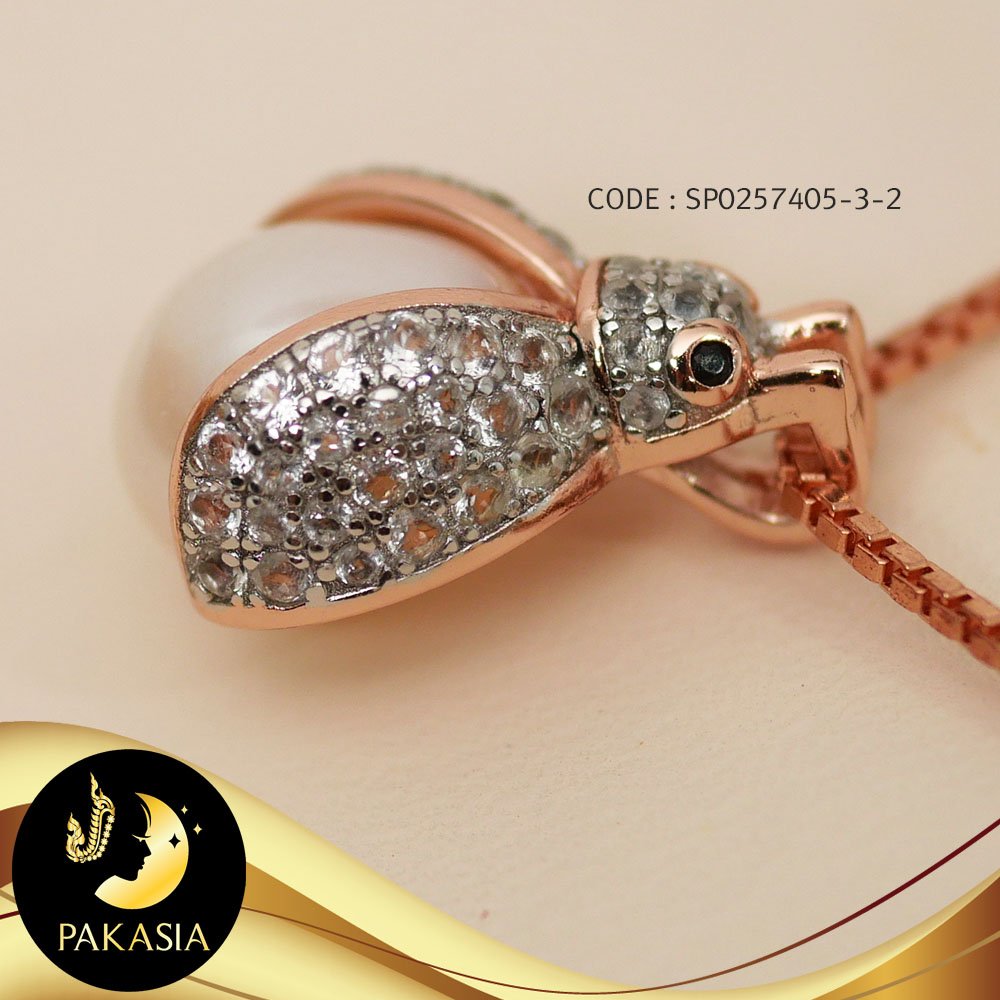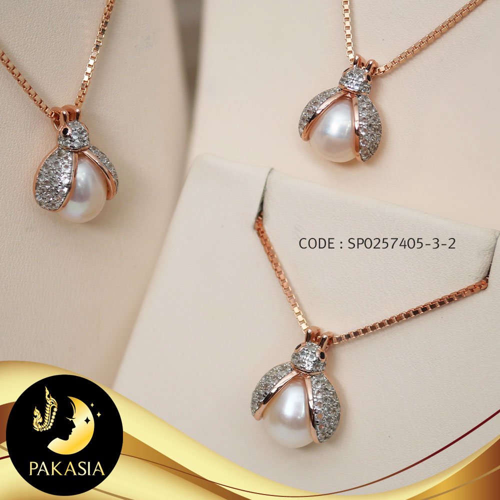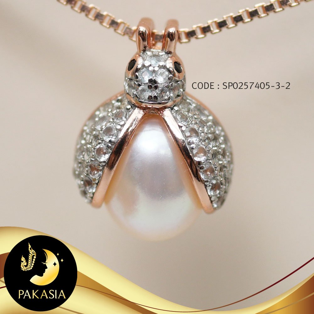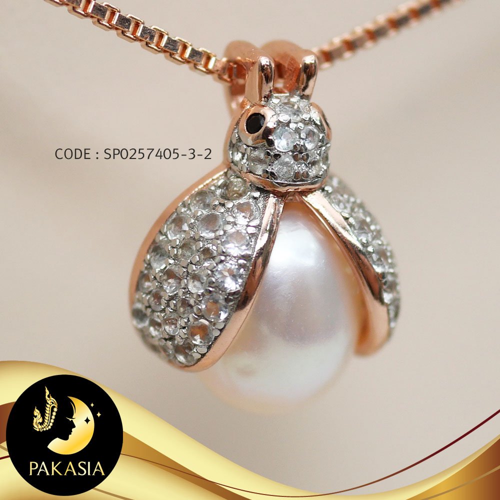 จี้มุกแมลงเต่าทอง มุกสีขาว ทรงหยดน้ำ ขนาด 8 mmเกรด AA+ ตัวเรือนแมลงเต่าทอง เงินแท้ 92.5 ชุบ Pink Gold ประดับพลอยแท้ White Topaz เม็ดมุกมีรอยธรรมชาติ ±5% สินค้าทุกชิ้นมีใบรับประกันมุกแท้ (Certificate of Guarantee) เม็ดมุกแต่ละเม็ดมีลักษณะเฉพาะตัว อาจมีรูปทรง ขนาด และสีต่างกันเล็กน้อย จากภาพโฆษณา