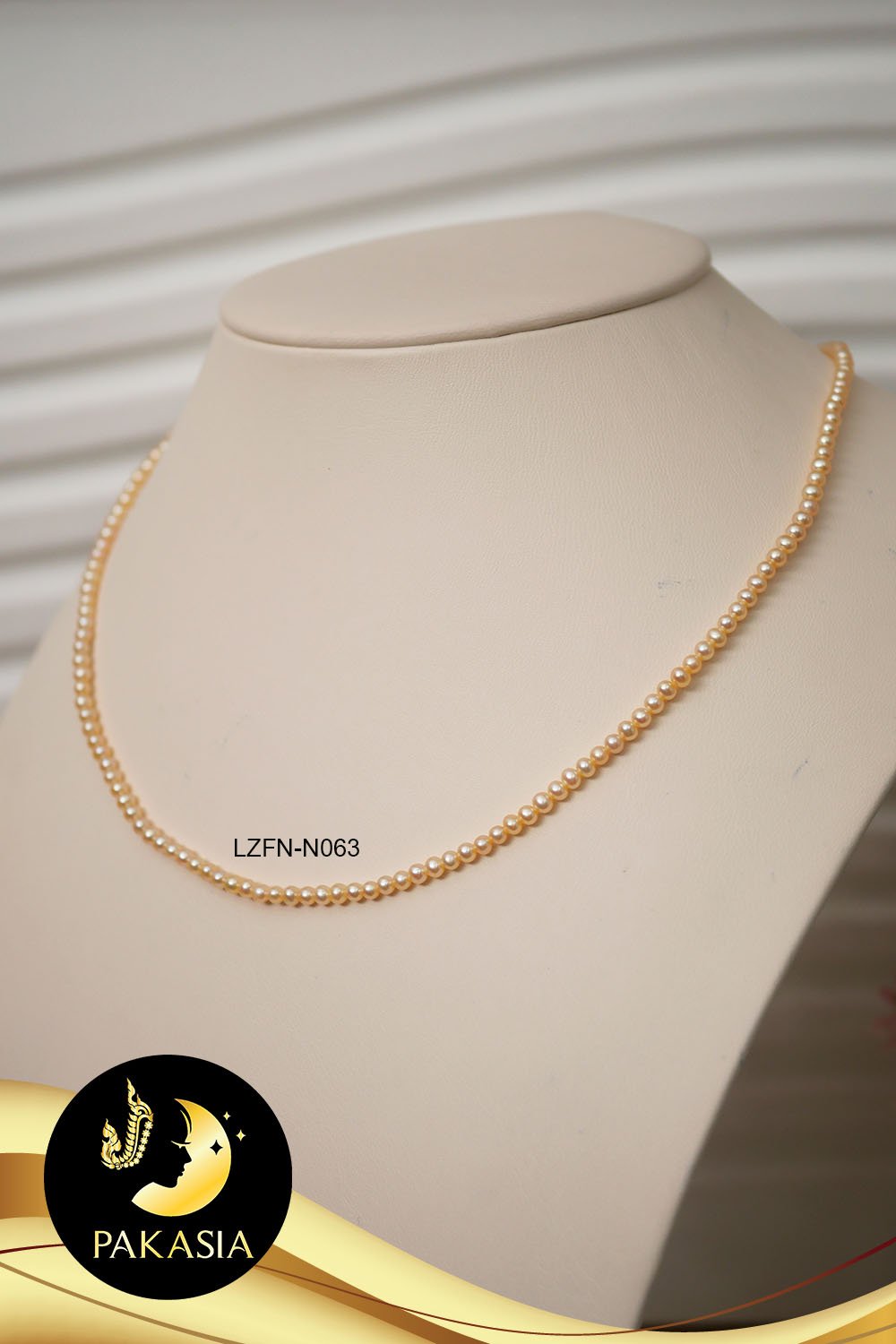 สร้อยคอมุกล้วนไซส์จิ๋ว มุกน้ำจืดคัดเกรด สีพีช ทรงกลม ขนาด 3 mm เกรด AAA ตัวเรือนสร้อยโอเมก้า ไดมอนด์คัท บอลล็อกซิลิโคนปรับรูดได้ เงินแท้ 92.5 ชุบ Pink Gold สินค้าทุกชิ้นมีใบรับประกันมุกแท้ (Certificate of Guarantee) เม็ดมุกแต่ละเม็ดมีลักษณะเฉพาะตัว อาจมีรูปทรง ขนาด และสีต่างกันเล็กน้อย จากภาพโฆษณา