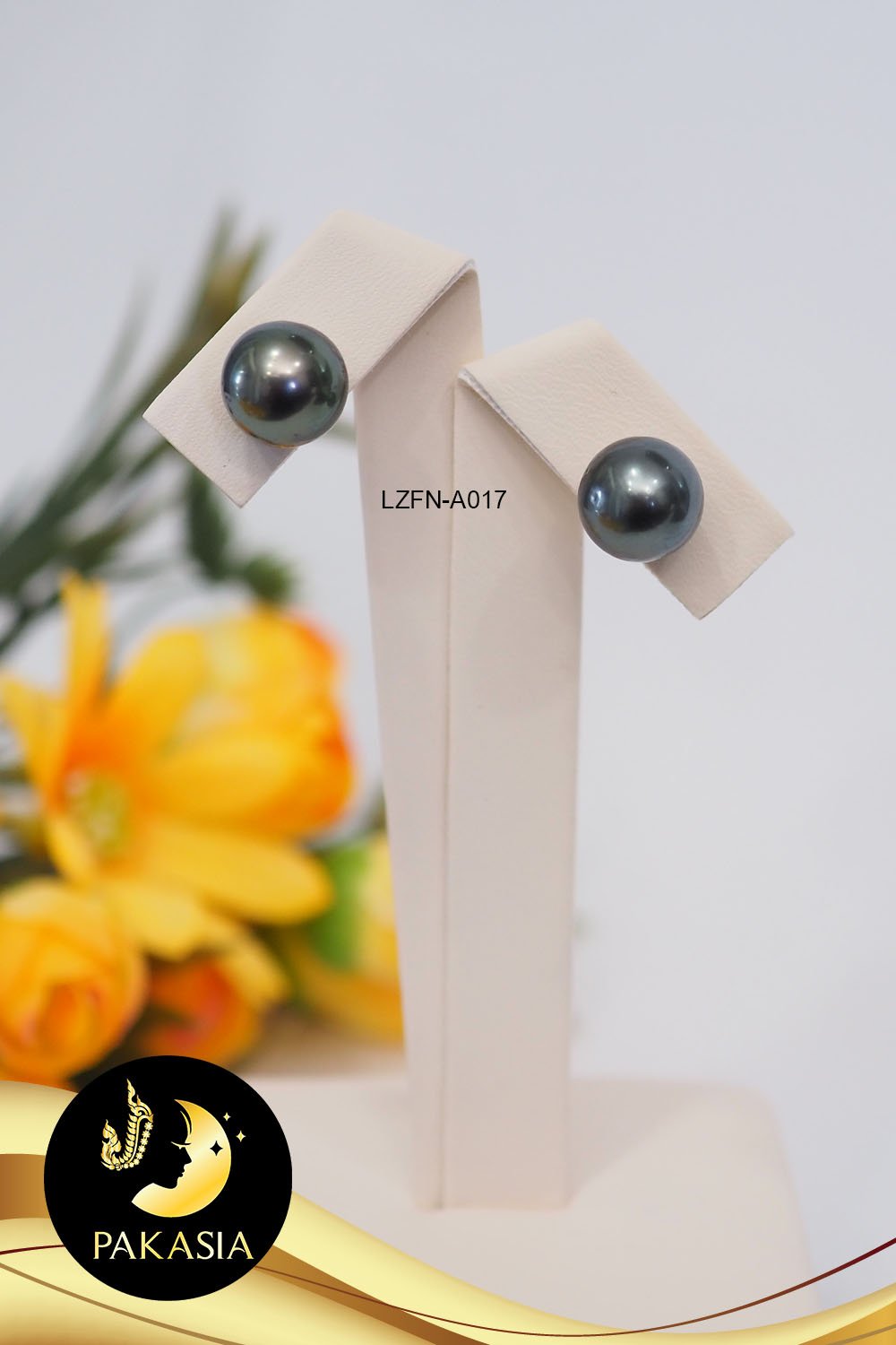 ต่างหูติดหู มุกตาฮิติ สีดำ ทรงกลม มุกขนาด 9-10 mm เกรด AA ตัวเรือน เงินแท้ 92.5 ชุบทองคำขาว สินค้าทุกชิ้นมีใบรับประกันมุกแท้ (Certificate of Guarantee) เม็ดมุกแต่ละเม็ดมีลักษณะเฉพาะตัว อาจมีรูปทรง ขนาด และสีต่างกันเล็กน้อย จากภาพโฆษณา
