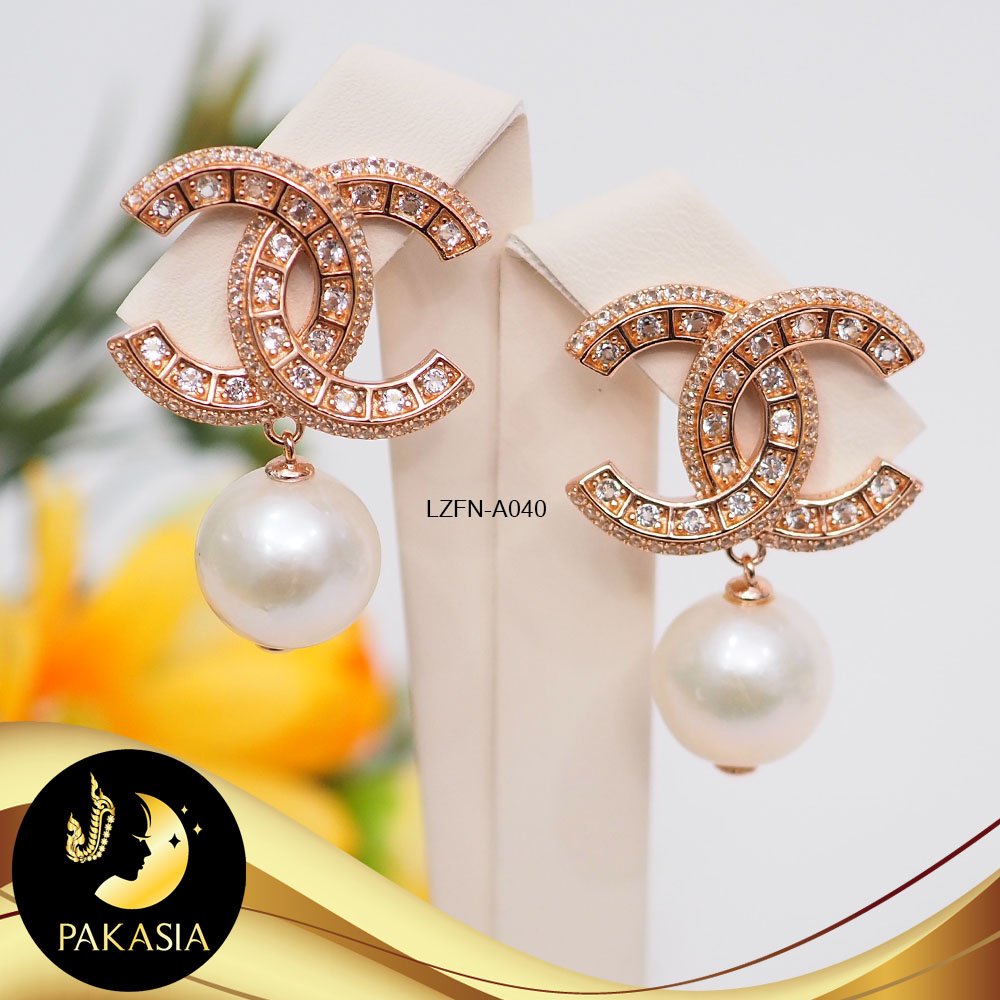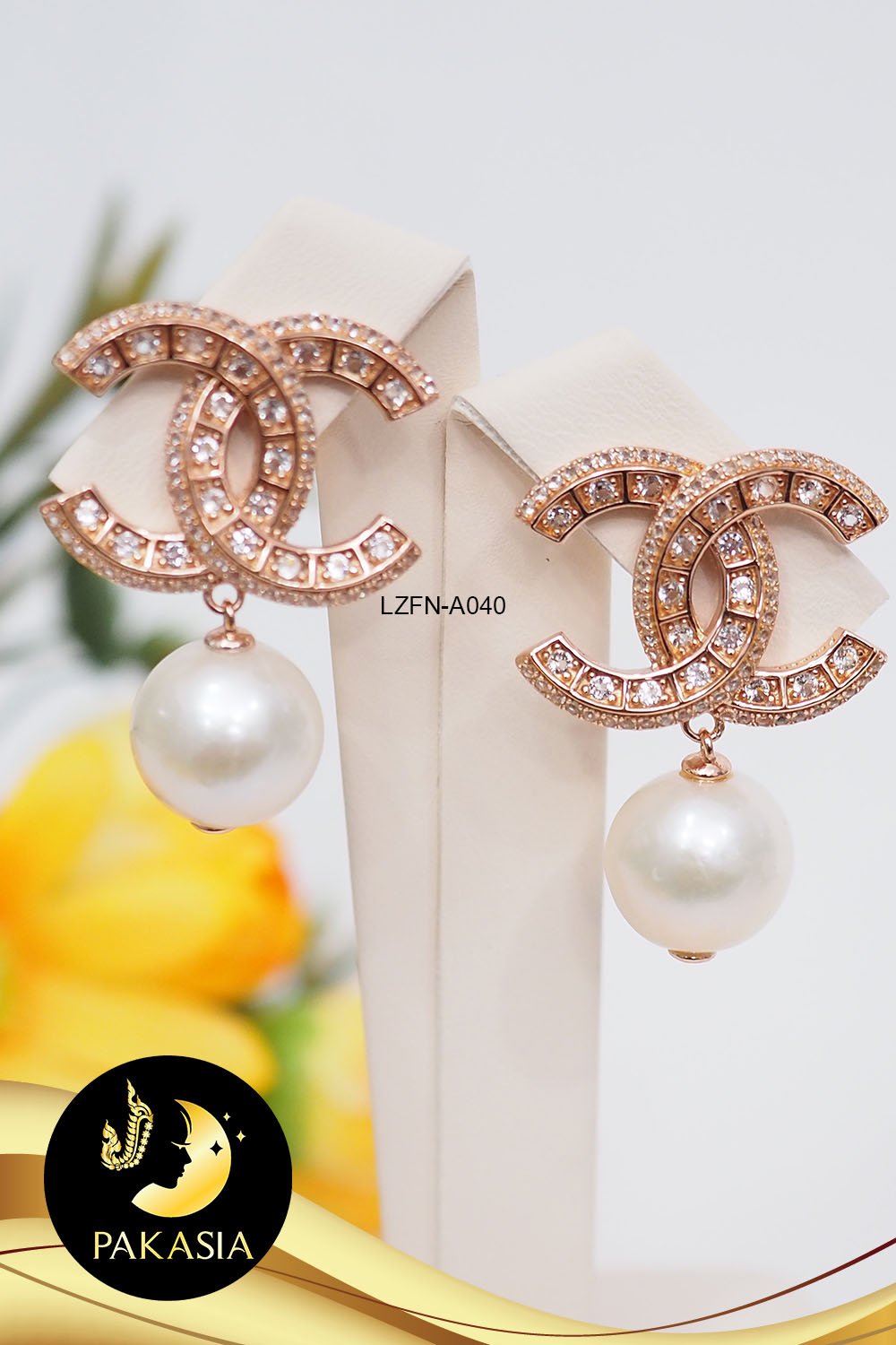 ต่างหูมุกแชแนลมุกใหญ่ มุกน้ำจืดคัดเกรด สีขาว ทรงกลม มุกขนาด 11 mm เกรด AA ตัวเรือนเงินแท้ชุบ Pink Gold สินค้าทุกชิ้นมีใบรับประกันมุกแท้ (Certificate of Guarantee) เม็ดมุกแต่ละเม็ดมีลักษณะเฉพาะตัว อาจมีรูปทรง ขนาด และสีต่างกันเล็กน้อย จากภาพโฆษณา