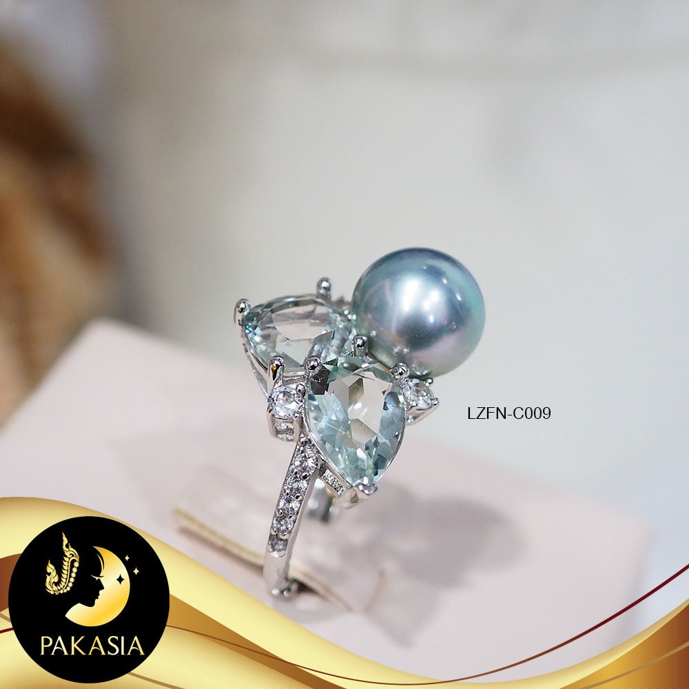 แหวนมุกตาฮิติ พวงองุ่นประดับพลอยแท้ Green Amethyst และ White Topaz รวม 4 ct. ปรับไซส์ได้ มุกตาฮิติ คัดเกรด สีเทาประกายพิตตาชิโอ ขนาด 9-10 mm เกรด AAA ตัวเรือนเงินแท้ 92.5 ชุบทองคำขาว ประดับพลอยแท้ Green Amethyst และ White Topaz รวม 4 ct. สินค้าทุกชิ้นมีใบรับประกันมุกแท้ (Certificate of Guarantee) เม็ดมุกแต่ละเม็ดมีลักษณะเฉพาะตัว อาจมีรูปทรง ขนาด และสีต่างกันเล็กน้อย จากภาพโฆษณา