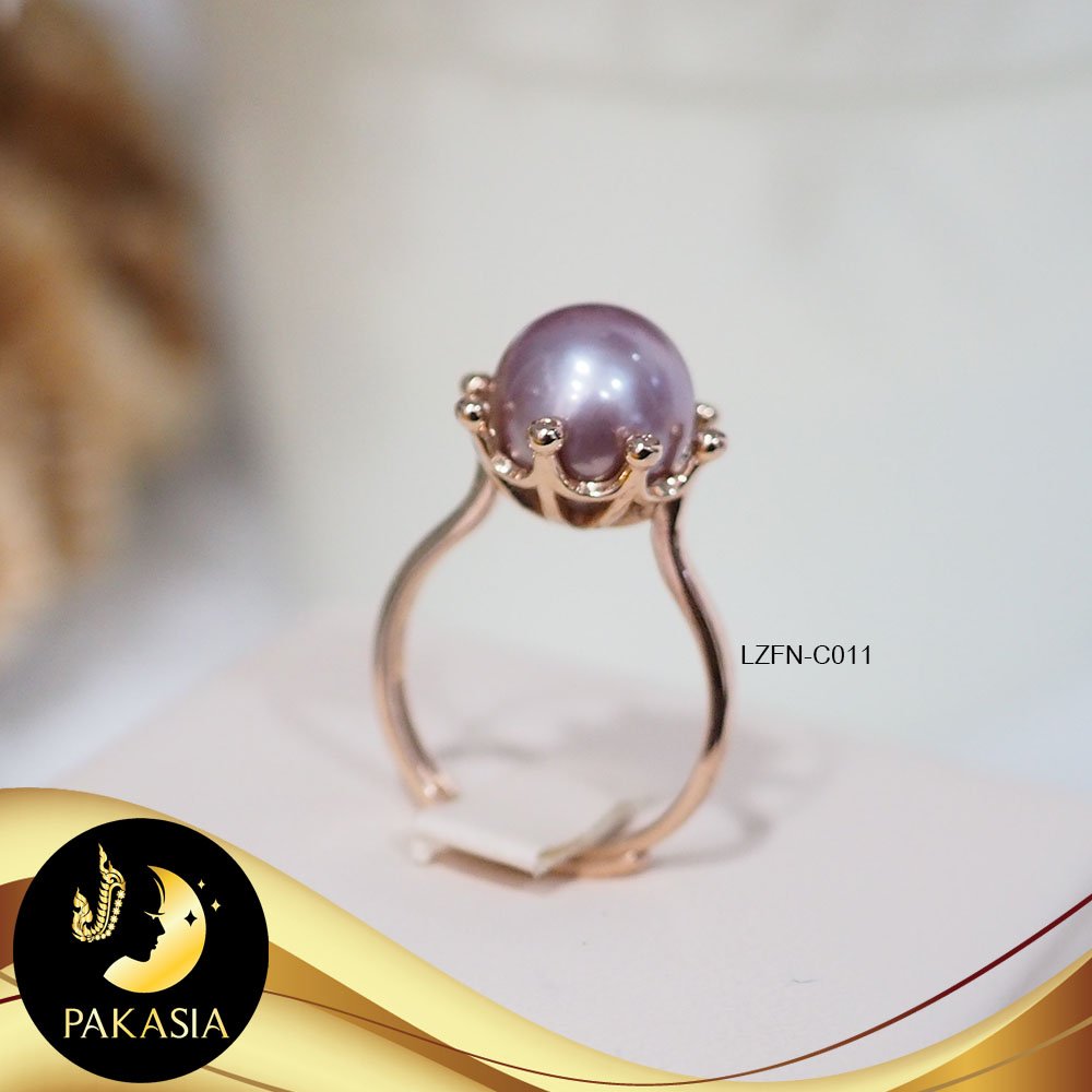 แหวนมุกหัวชู มุกเม็ดเดี่ยวบนฐานมงกุฎ มุกสีม่วง เกรด AA+ ตัวเรือนเงินแท้ชุบ Pink Gold ปรับไซส์ได้ สินค้าทุกชิ้นมีใบรับประกันมุกแท้ (Certificate of Guarantee) เม็ดมุกแต่ละเม็ดมีลักษณะเฉพาะตัว อาจมีรูปทรง ขนาด และสีต่างกันเล็กน้อย จากภาพโฆษณา