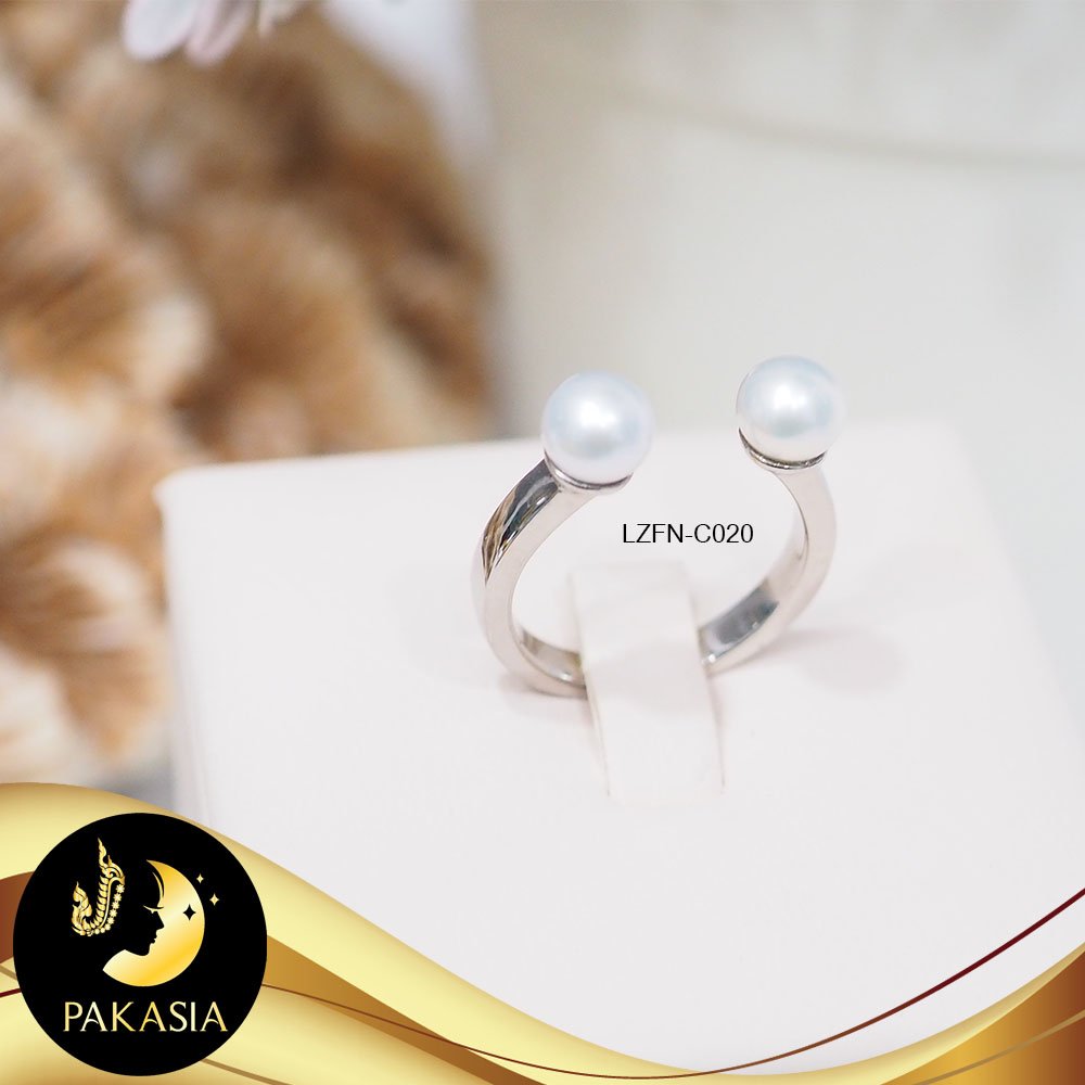แหวน Open Ring หัวมุกทวิน มุกน้ำจืดคัดเกรด สีขาว 2 เม็ด ทรงกลม ขนาด 6 mm เกรด AAA ตัวเรือนเงินแท้ 92.5 ชุบทองคำขาว ปรับไซส์ได้ สินค้าทุกชิ้นมีใบรับประกันมุกแท้ (Certificate of Guarantee) เม็ดมุกแต่ละเม็ดมีลักษณะเฉพาะตัว อาจมีรูปทรง ขนาด และสีต่างกันเล็กน้อย จากภาพโฆษณา