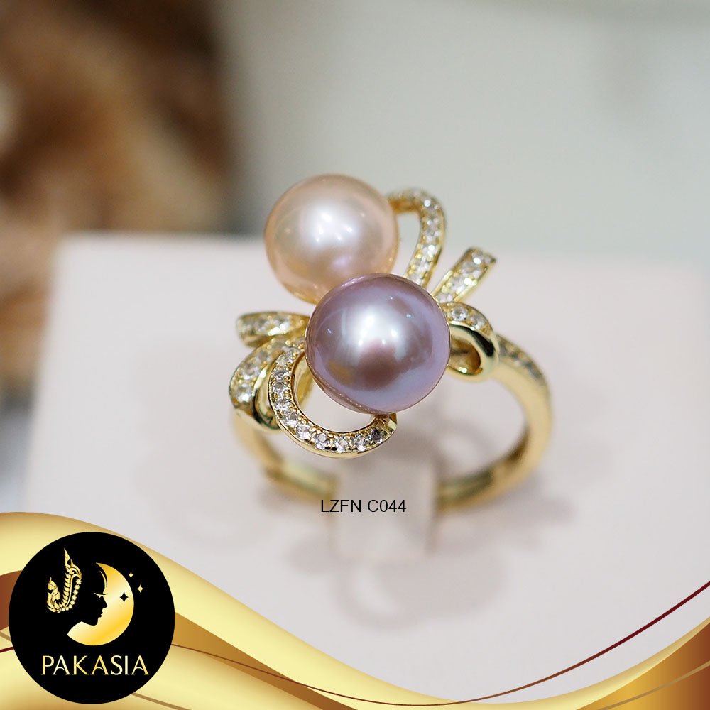 แหวนมุกทวินโบว์ใหญ่ ปรับไซส์ได้ มุกน้ำจืดคัดเกรด สีมัลติคัลเลอร์ ทรงSemi-round ขนาด 8 mm เกรด AAA ตัวเรือนเงินแท้ 92.5 ชุบทอง ประดับพลอยแท้ White Topaz สินค้าทุกชิ้นมีใบรับประกันมุกแท้ (Certificate of Guarantee) เม็ดมุกแต่ละเม็ดมีลักษณะเฉพาะตัว อาจมีรูปทรง ขนาด และสีต่างกันเล็กน้อย จากภาพโฆษณา