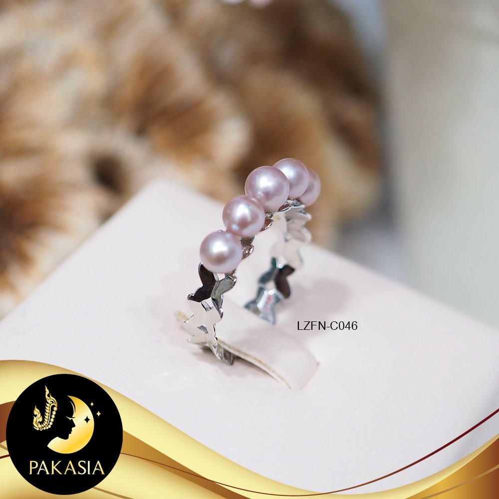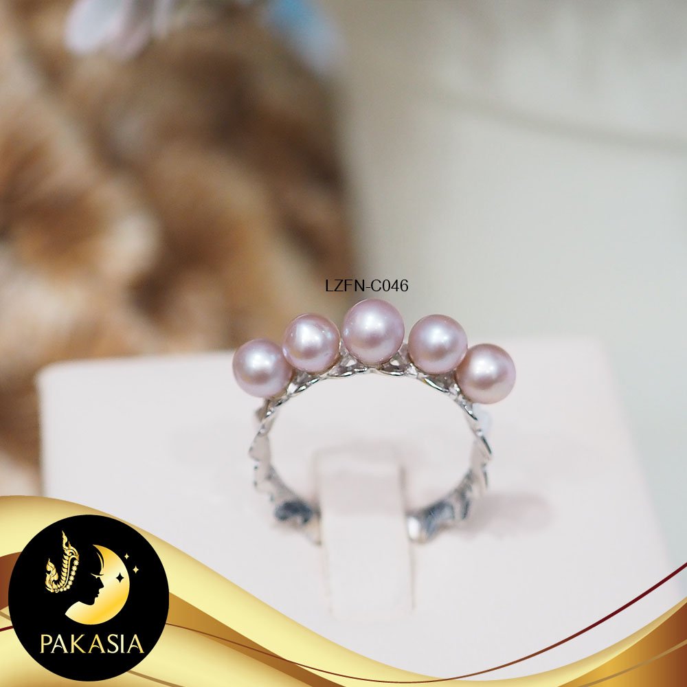 แหวนมุกมงกุฎไข่ปลา ปรับไซส์ได้ มุกน้ำจืดคัดเกรด สีม่วง 5 เม็ด ทรงกลม ขนาด 4 mm เกรด AAA ตัวเรือนเงินแท้ 92.5 ชุบทองคำขาว สินค้าทุกชิ้นมีใบรับประกันมุกแท้ (Certificate of Guarantee) เม็ดมุกแต่ละเม็ดมีลักษณะเฉพาะตัว อาจมีรูปทรง ขนาด และสีต่างกันเล็กน้อย จากภาพโฆษณา