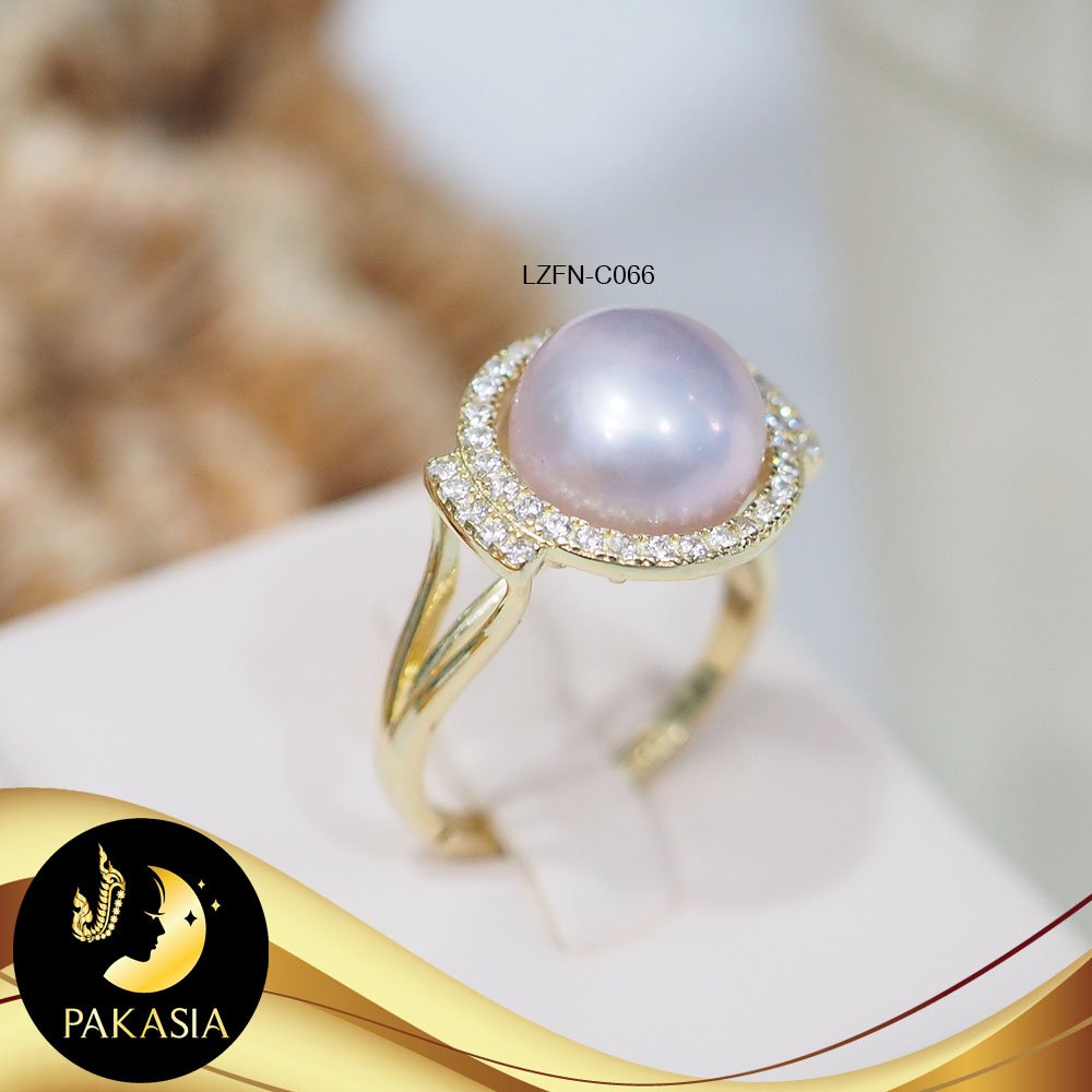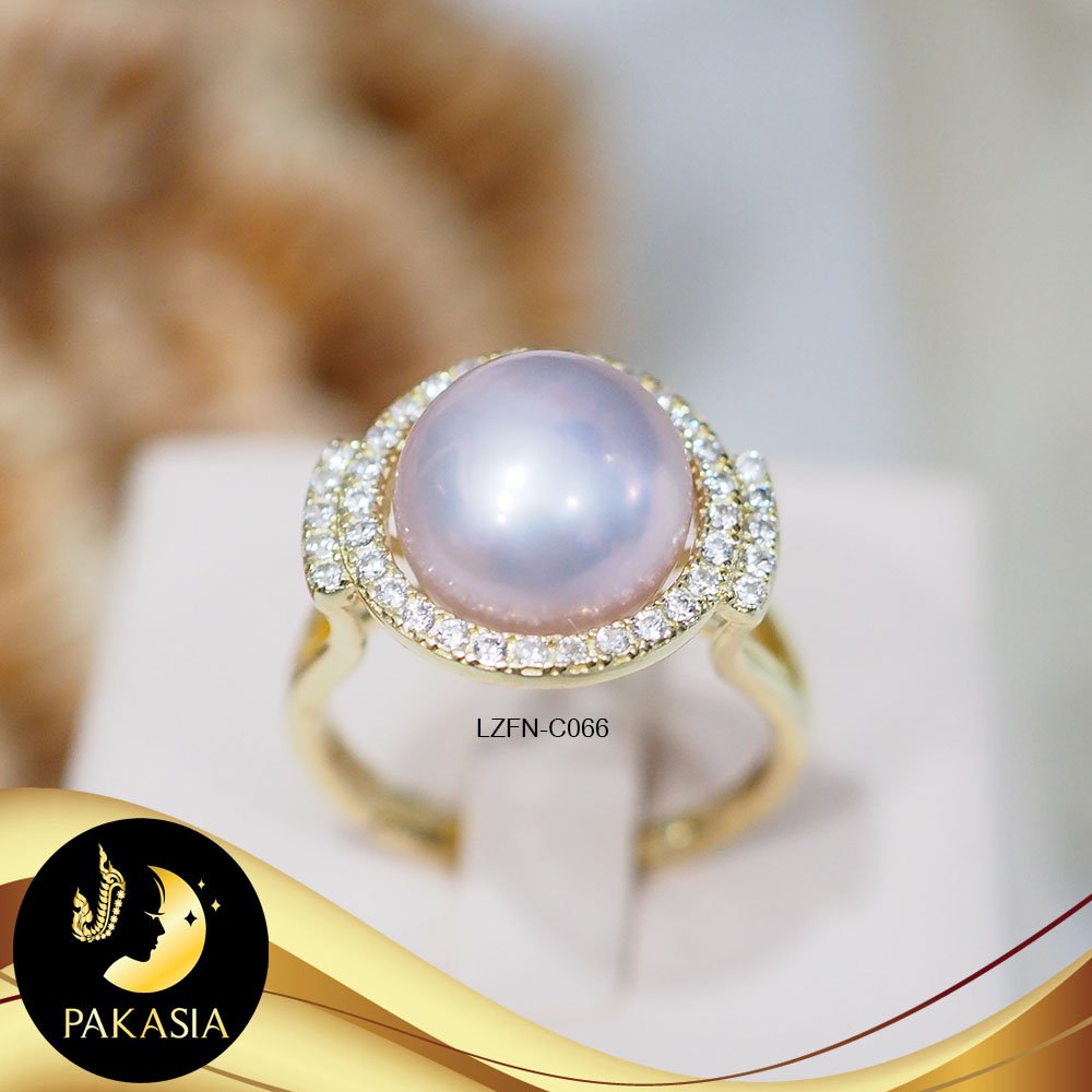 แหวนมุกหัวชูล้อมเพชร มุกเม็ดเดี่ยว สีม่วงชมพู ทรงซาลาเปา เกรด AA+ ขนาด 10.6 mm ตัวเรือนเงินแท้ 92.5 ชุบทอง ประดับเพชร CZ ปรับไซส์ได้ สินค้าทุกชิ้นมีใบรับประกันมุกแท้ (Certificate of Guarantee) เม็ดมุกแต่ละเม็ดมีลักษณะเฉพาะตัว อาจมีรูปทรง ขนาด และสีต่างกันเล็กน้อย จากภาพโฆษณา
