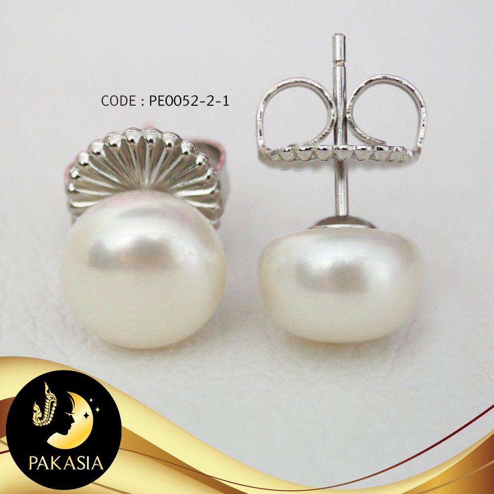 • ต่างหูติดหูทับหลัง Tutu มุกน้ำจืดคัดเกรด สีขาว ทรงซาลาเปา ขนาด 9 mm เกรด AA+