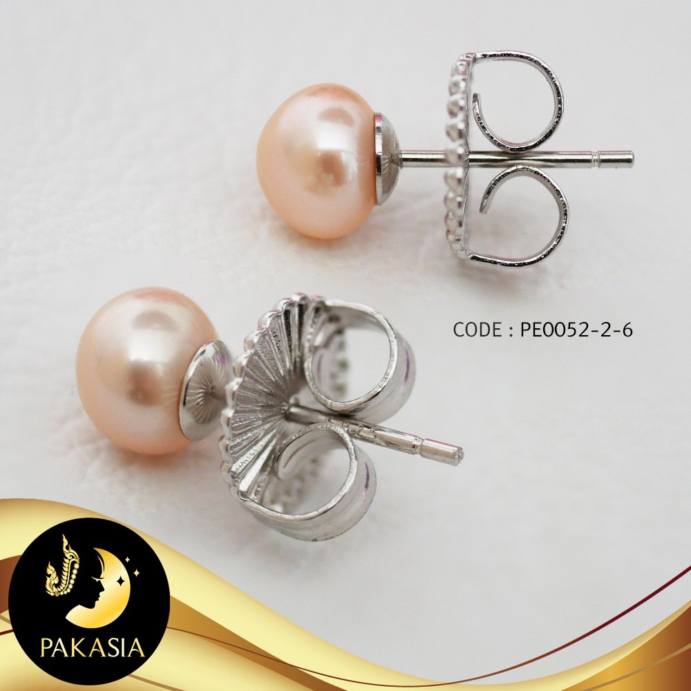 ต่างหูมุกติดหูทับหลัง Tutu มุกน้ำจืดคัดเกรด สีพีช ทรงซาลาเปา ขนาด 6 mm เกรด AA+ ตัวเรือนเงินแท้ 92.5 ชุบทองคำขาว / E913 / 10.2.64