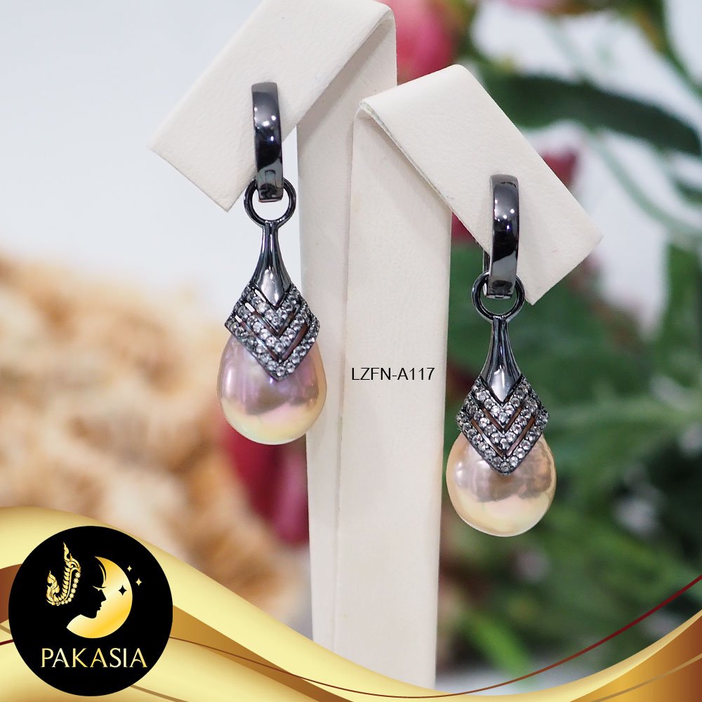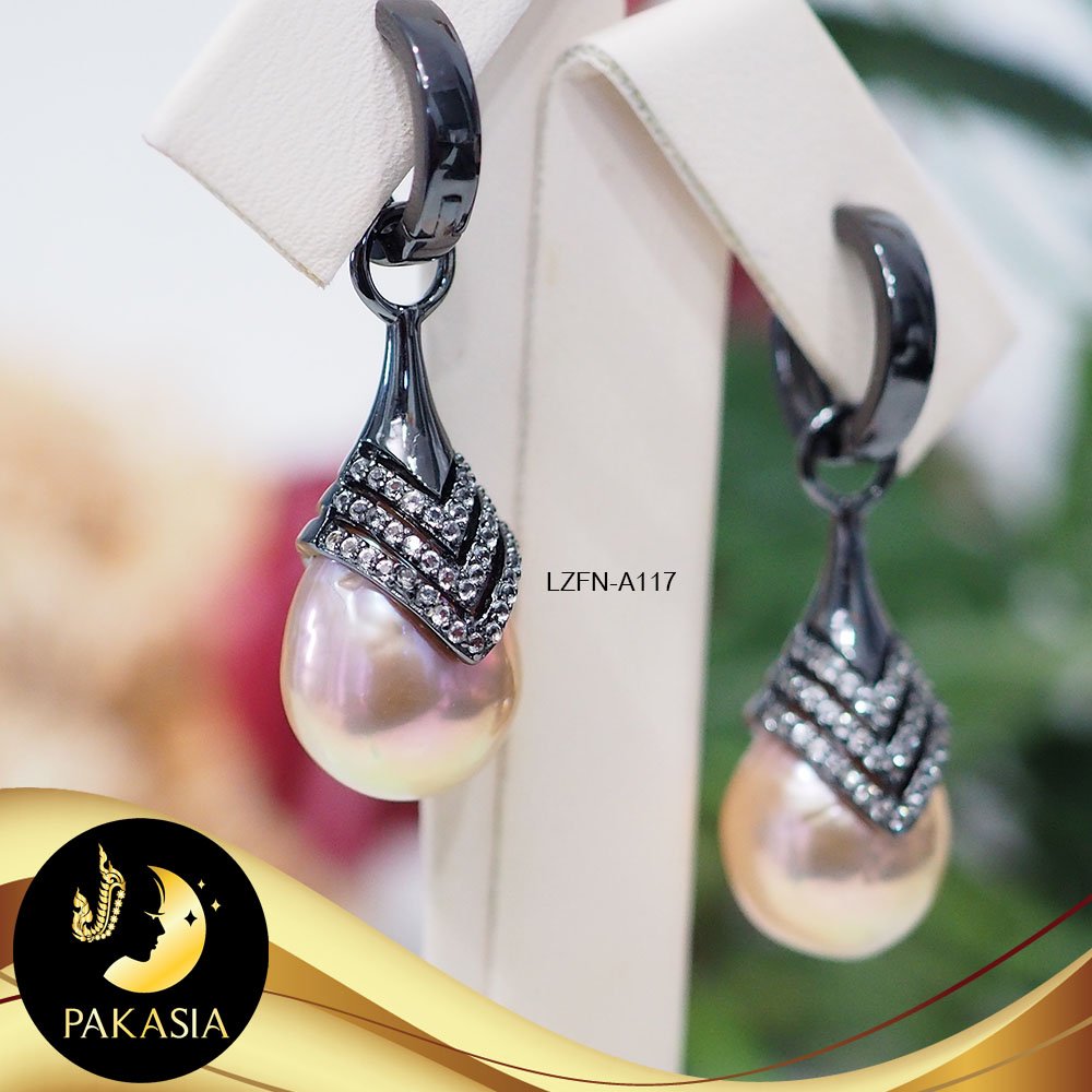 ต่างหู Jacket กรวยใหญ่ประดับพลอยแท้ White Topaz ห้อยมุกน้ำจืดคัดเกรด สีม่วงพีช ทรงบาร็อค ขนาด 11.5 mm เกรด AA+ ตัวเรือนเงินแท้ 92.5 ชุบ Black Rhodium เม็ดมุกมีรอยธรรมชาติ±5% สินค้าทุกชิ้นมีใบรับประกันมุกแท้ (Certificate of Guarantee) เม็ดมุกแต่ละเม็ดมีลักษณะเฉพาะตัว อาจมีรูปทรง ขนาด และสีต่างกันเล็กน้อย จากภาพโฆษณา