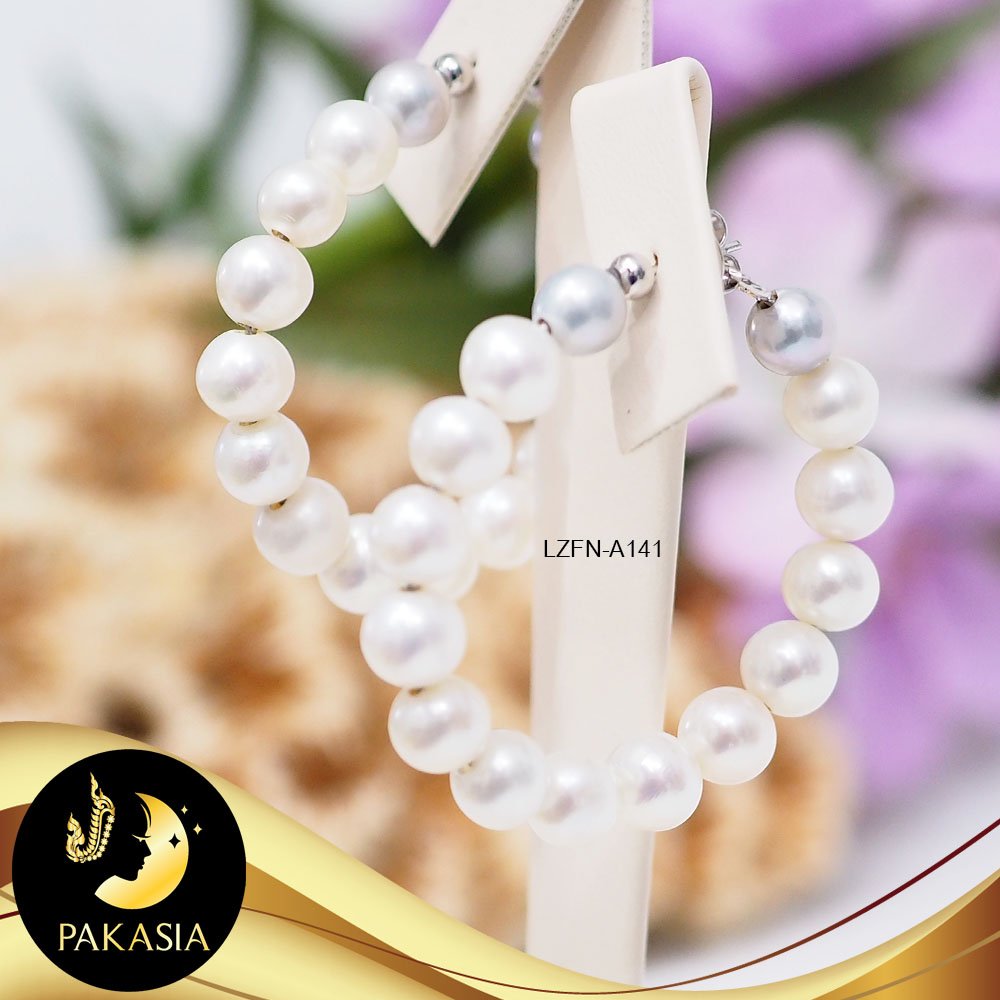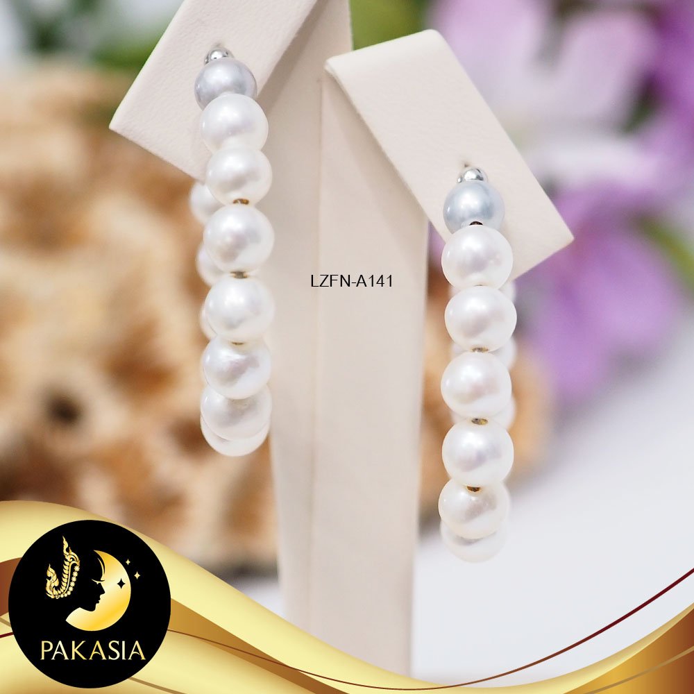 ต่างหูห่วงมุกล้วน ขนาดเส้นผ่านศูนย์กลาง 4 cm. มุกน้ำจืดคัดเกรด สีขาว - เทา ทรงกลม ขนาด 6- 6.5 mm เกรด AA ตัวเรือนเงินแท้ 92.5 ชุบทองคำขาว เม็ดมุกแท้มีรอยธรรมชาติบ้าง สินค้าทุกชิ้นมีใบรับประกันมุกแท้ (Certificate of Guarantee) เม็ดมุกแต่ละเม็ดมีลักษณะเฉพาะตัว อาจมีรูปทรง ขนาด และสีต่างกันเล็กน้อย จากภาพโฆษณา