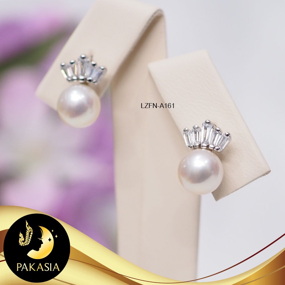 ต่างหูติดหูมงกุฎเพชรห้อยมุกแท้ มุกน้ำจืดคัดเกรด สีขาว ทรงซาลาเปา ขนาด 7 mm เกรด AA+ ตัวเรือนเงินแท้ 92.5 ชุบทองคำขาว ประดับเพชร CZ เม็ดมุกแท้มีรอยธรรมชาติบ้าง สินค้าทุกชิ้นมีใบรับประกันมุกแท้ (Certificate of Guarantee) เม็ดมุกแต่ละเม็ดมีลักษณะเฉพาะตัว อาจมีรูปทรง ขนาด และสีต่างกันเล็กน้อย จากภาพโฆษณา