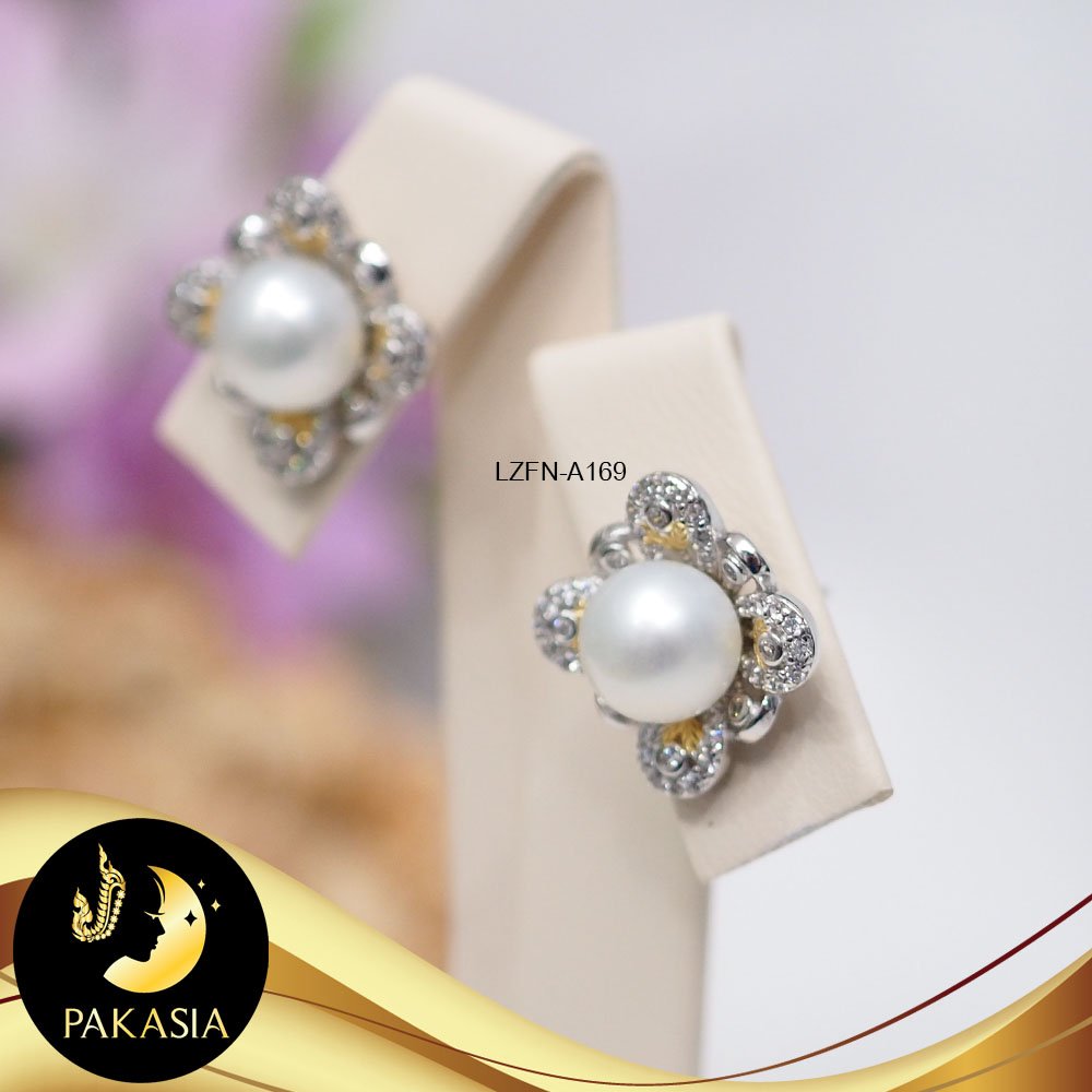 ต่างหูดอกไม้ติดหูประดับมุก มุกน้ำจืดคัดเกรด สีขาว ทรงเกือบกลม ขนาด 7.5 mm เกรด AA+ ตัวเรือนเงินแท้ 92.5 ประดับเพชร CZ เม็ดมุกแท้มีรอยธรรมชาติบ้าง สินค้าทุกชิ้นมีใบรับประกันมุกแท้ (Certificate of Guarantee) เม็ดมุกแต่ละเม็ดมีลักษณะเฉพาะตัว อาจมีรูปทรง ขนาด และสีต่างกันเล็กน้อย จากภาพโฆษณา