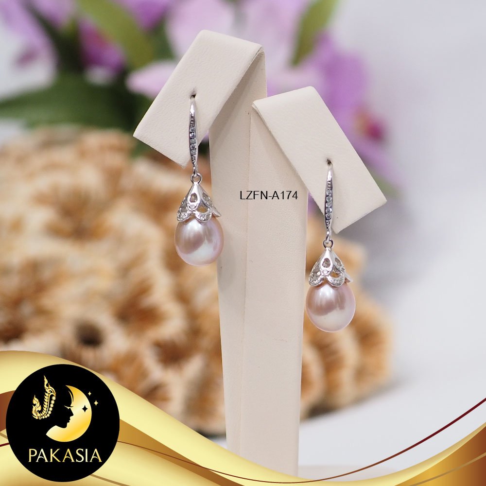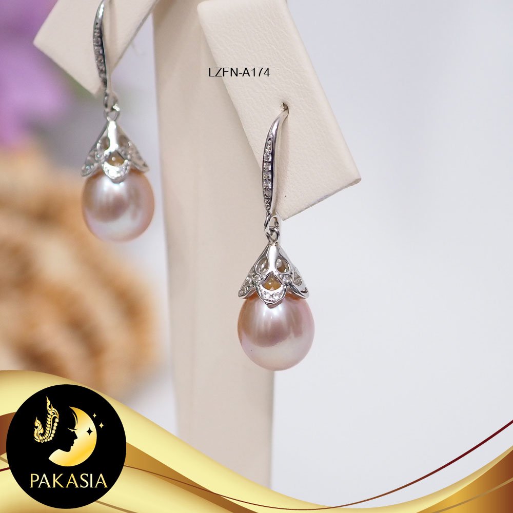 ต่างหู Fish Hooks ฝาครอบกรวยใหญ่ฉลุลาย มุกจัมโบ้ มุกน้ำจืดคัดเกรด สีม่วง ทรงหยดน้ำ ขนาด 8-9 mm เกรด AA+ ตัวเรือนเงินแท้ 92.5 ชุบทองคำขาว ประดับเพชร CZ เม็ดมุกแท้มีรอยธรรมชาติบ้าง สินค้าทุกชิ้นมีใบรับประกันมุกแท้ (Certificate of Guarantee) เม็ดมุกแต่ละเม็ดมีลักษณะเฉพาะตัว อาจมีรูปทรง ขนาด และสีต่างกันเล็กน้อย จากภาพโฆษณา