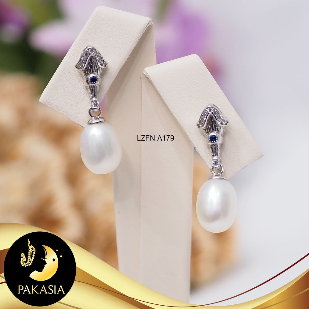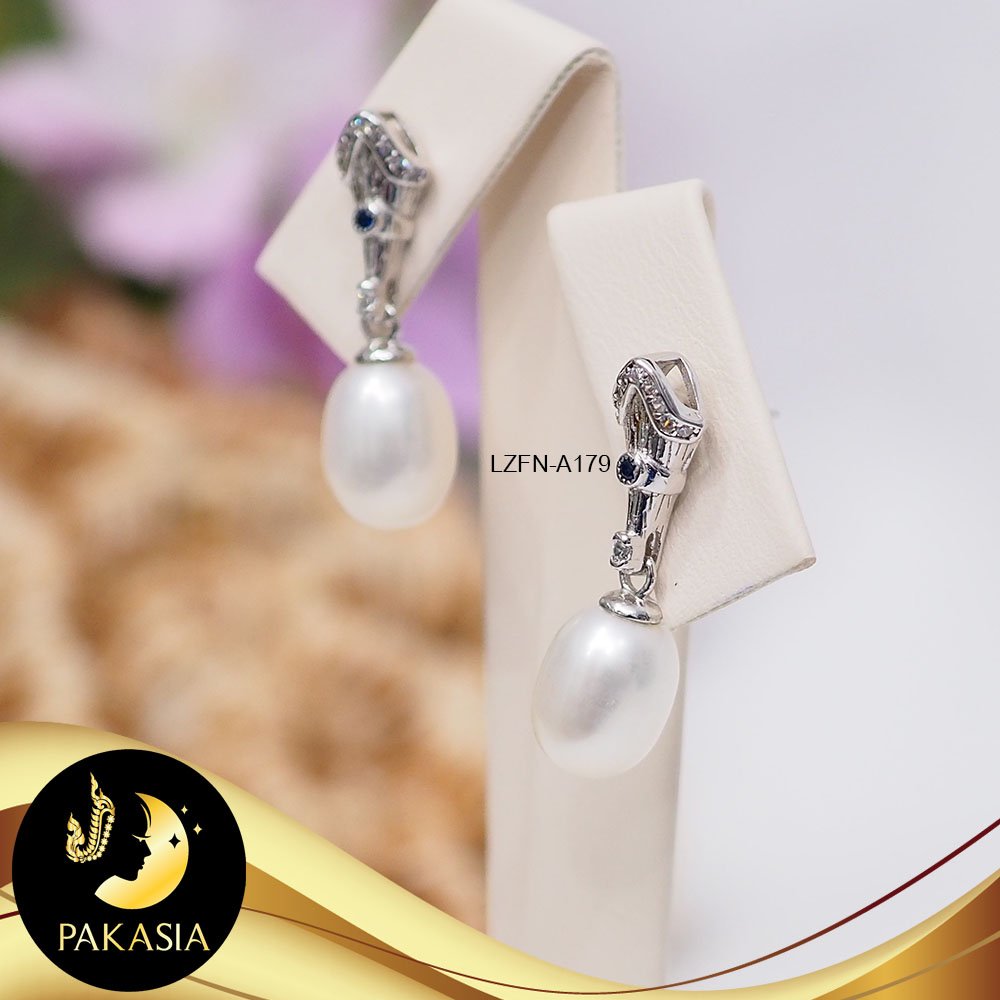 ต่างหูแฟชั่น ห้อยมุกแท้ มุกน้ำจืดคัดเกรด สีขาว ทรงหยดน้ำ ขนาด 8-9 mm เกรด AA+ ตัวเรือนเงินแท้ 92.5 ชุบทองคำขาว ประดับเพชร CZ เม็ดมุกแท้มีรอยธรรมชาติบ้าง สินค้าทุกชิ้นมีใบรับประกันมุกแท้ (Certificate of Guarantee) เม็ดมุกแต่ละเม็ดมีลักษณะเฉพาะตัว อาจมีรูปทรง ขนาด และสีต่างกันเล็กน้อย จากภาพโฆษณา