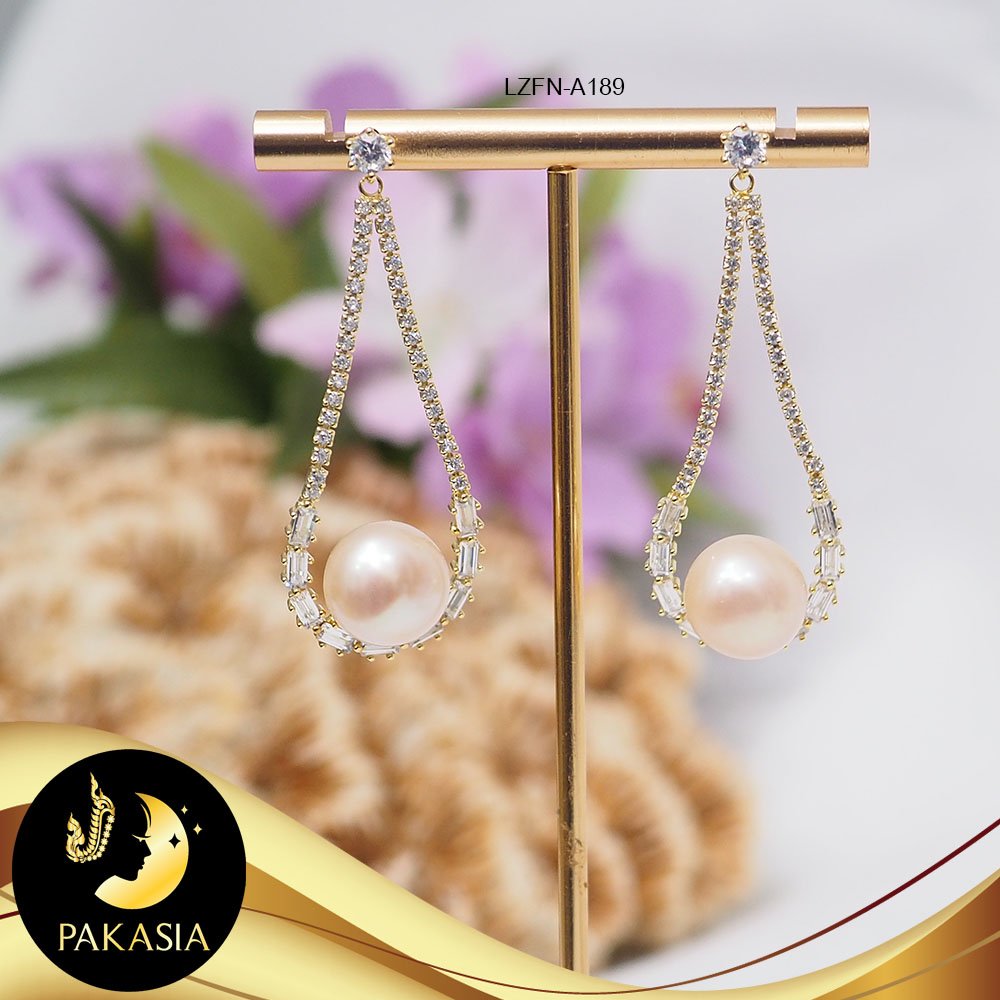 ต่างหูห้อยมุกเม็ดเดี่ยวระย้า ประดับเพชร มุกน้ำจืดคัดเกรด สีพีชโอลด์โรส ทรงซาลาเปา ขนาด 12 mm เกรด AA+ ตัวเรือนเงินแท้ 92.5 ชุบทอง ประดับเพชร CZ เม็ดมุกแท้มีรอยธรรมชาติบ้าง สินค้าทุกชิ้นมีใบรับประกันมุกแท้ (Certificate of Guarantee) เม็ดมุกแต่ละเม็ดมีลักษณะเฉพาะตัว อาจมีรูปทรง ขนาด และสีต่างกันเล็กน้อย จากภาพโฆษณา