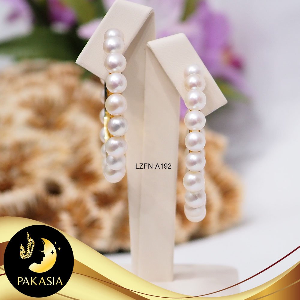 ต่างหูห่วงใหญ่ มุกล้วน ขนาดเส้นผ่านศูนย์กลาง 5 cm มุกน้ำจืดคัดเกรด สีขาว ทรง Semi-round ขนาด 5.8-6 mm เกรด AAA ตัวเรือนห่วงเงินแท้ 92.5 ชุบทอง เม็ดมุกแท้มีรอยธรรมชาติบ้าง สินค้าทุกชิ้นมีใบรับประกันมุกแท้ (Certificate of Guarantee) เม็ดมุกแต่ละเม็ดมีลักษณะเฉพาะตัว อาจมีรูปทรง ขนาด และสีต่างกันเล็กน้อย จากภาพโฆษณา