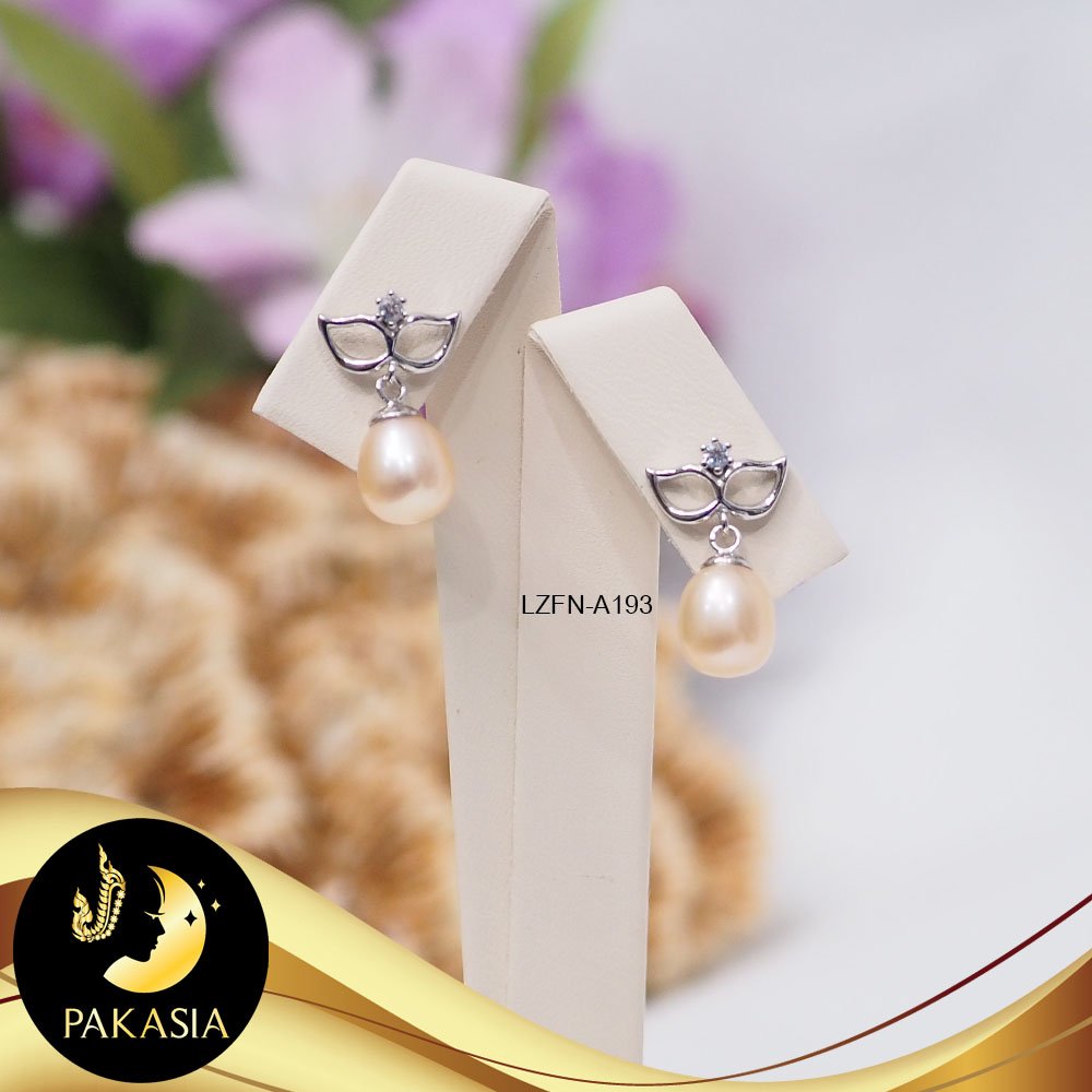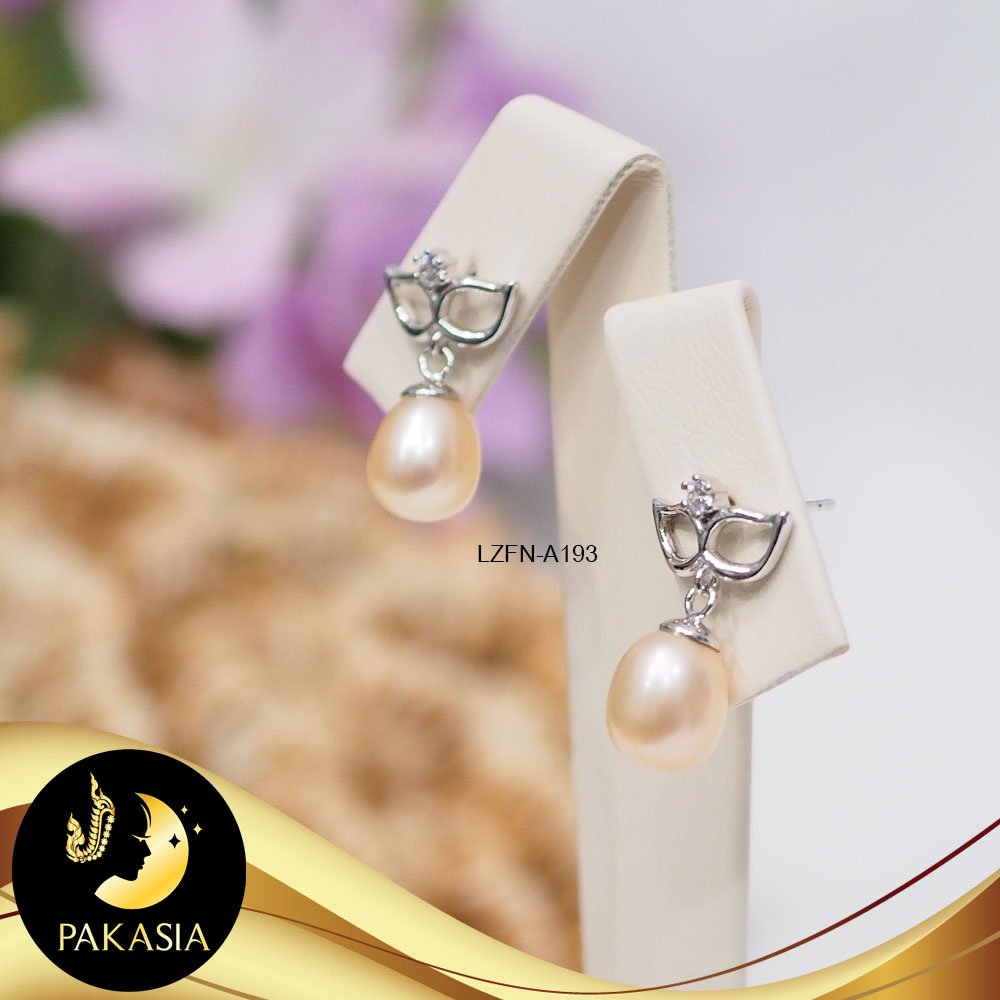 ต่างหูหน้ากากแฟนซีประดับมุก มุกน้ำจืดคัดเกรด สีพีช ทรงหยดน้ำ ขนาด 7 mm เกรด AA+ ตัวเรือนเงินแท้ 92.5 ชุบทองคำขาว ประดับเพชร CZ เม็ดมุกแท้มีรอยธรรมชาติบ้าง สินค้าทุกชิ้นมีใบรับประกันมุกแท้ (Certificate of Guarantee) เม็ดมุกแต่ละเม็ดมีลักษณะเฉพาะตัว อาจมีรูปทรง ขนาด และสีต่างกันเล็กน้อย จากภาพโฆษณา