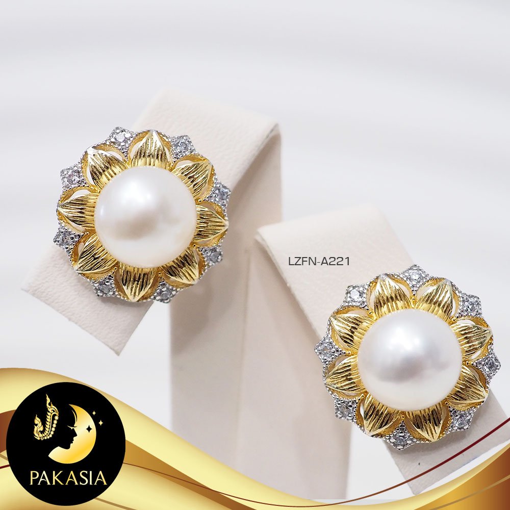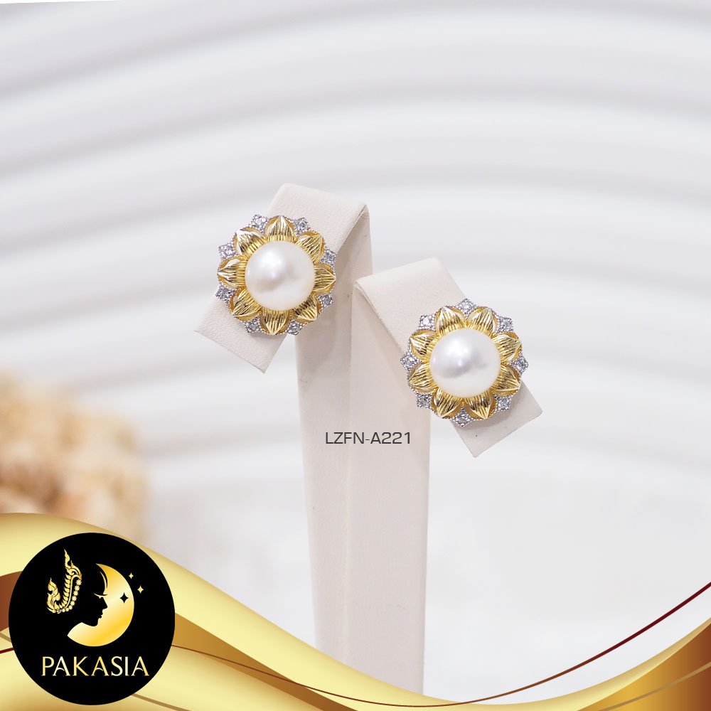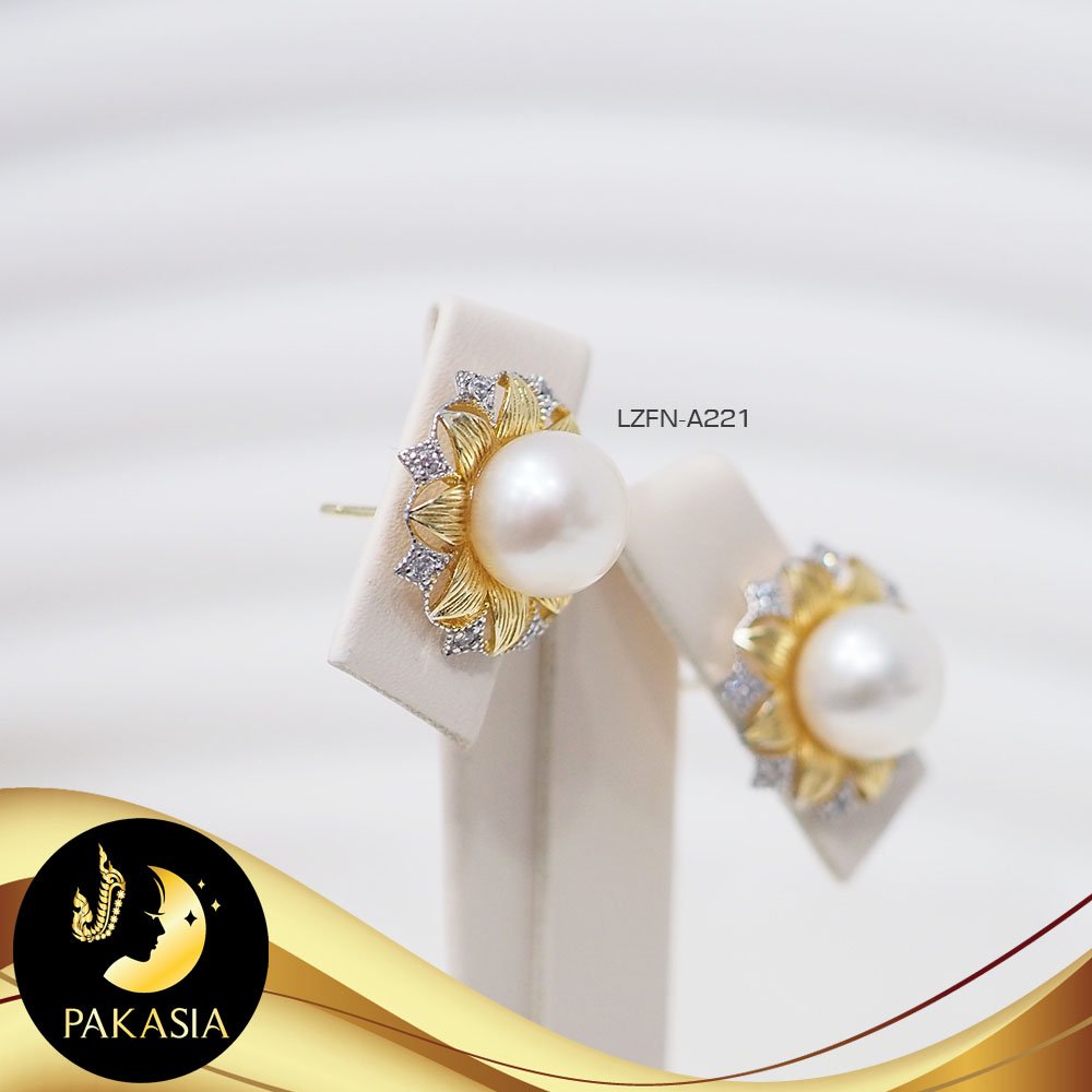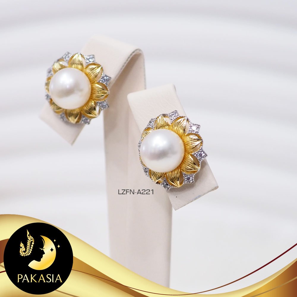 ต่างหูดอกทานตะวันมุกขาว มุกน้ำจืดคัดเกรด สีขาว ทรงเกือบกลม ขนาด 9 mm เกรด AAA ตัวเรือนเงินแท้ 92.5 ชุบทอง ประดับเพชร CZ เม็ดมุกมีรอยธรรมชาติ ±3% สินค้าทุกชิ้นมีใบรับประกันมุกแท้ (Certificate of Guarantee) เม็ดมุกแต่ละเม็ดมีลักษณะเฉพาะตัว อาจมีรูปทรง ขนาด และสีต่างกันเล็กน้อย จากภาพโฆษณา