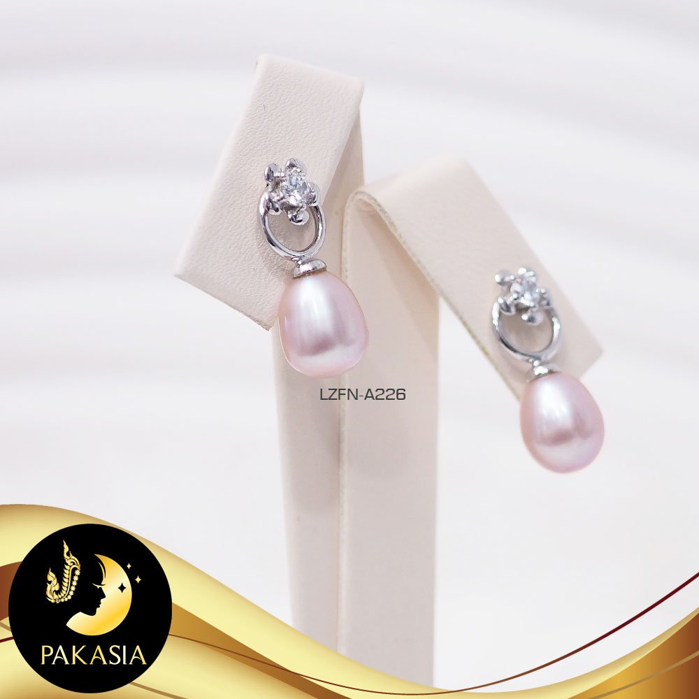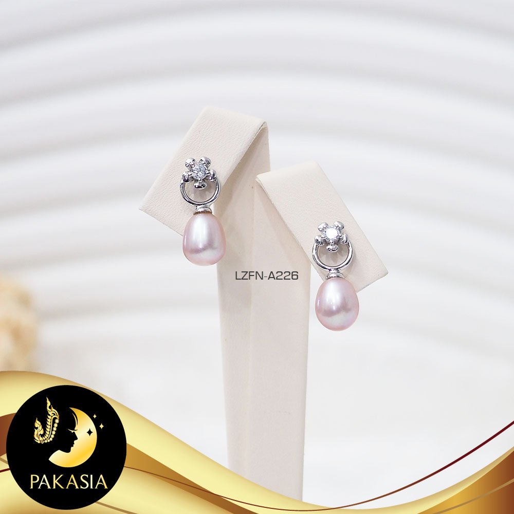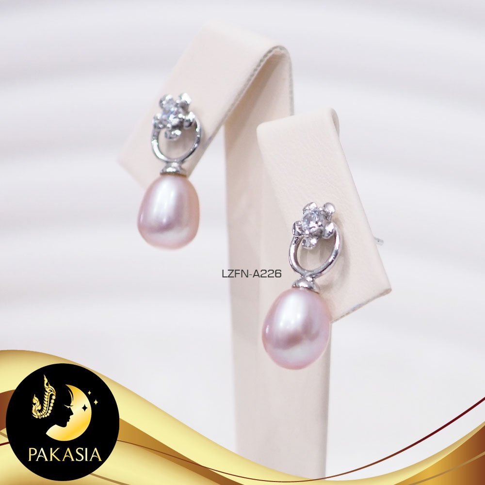 ต่างหูห่วงดอกไม้ประดับเพชร ห้อยมุก มุกน้ำจืดคัดเกรด สีม่วง ทรงหยดน้ำ ขนาด 7-8 mm เกรด AA ตัวเรือนเงินแท้ 92.5 ชุบทองคำขาว ประดับเพชร CZ เม็ดมุกมีรอยธรรมชาติ สินค้าทุกชิ้นมีใบรับประกันมุกแท้ (Certificate of Guarantee) เม็ดมุกแต่ละเม็ดมีลักษณะเฉพาะตัว อาจมีรูปทรง ขนาด และสีต่างกันเล็กน้อย จากภาพโฆษณา