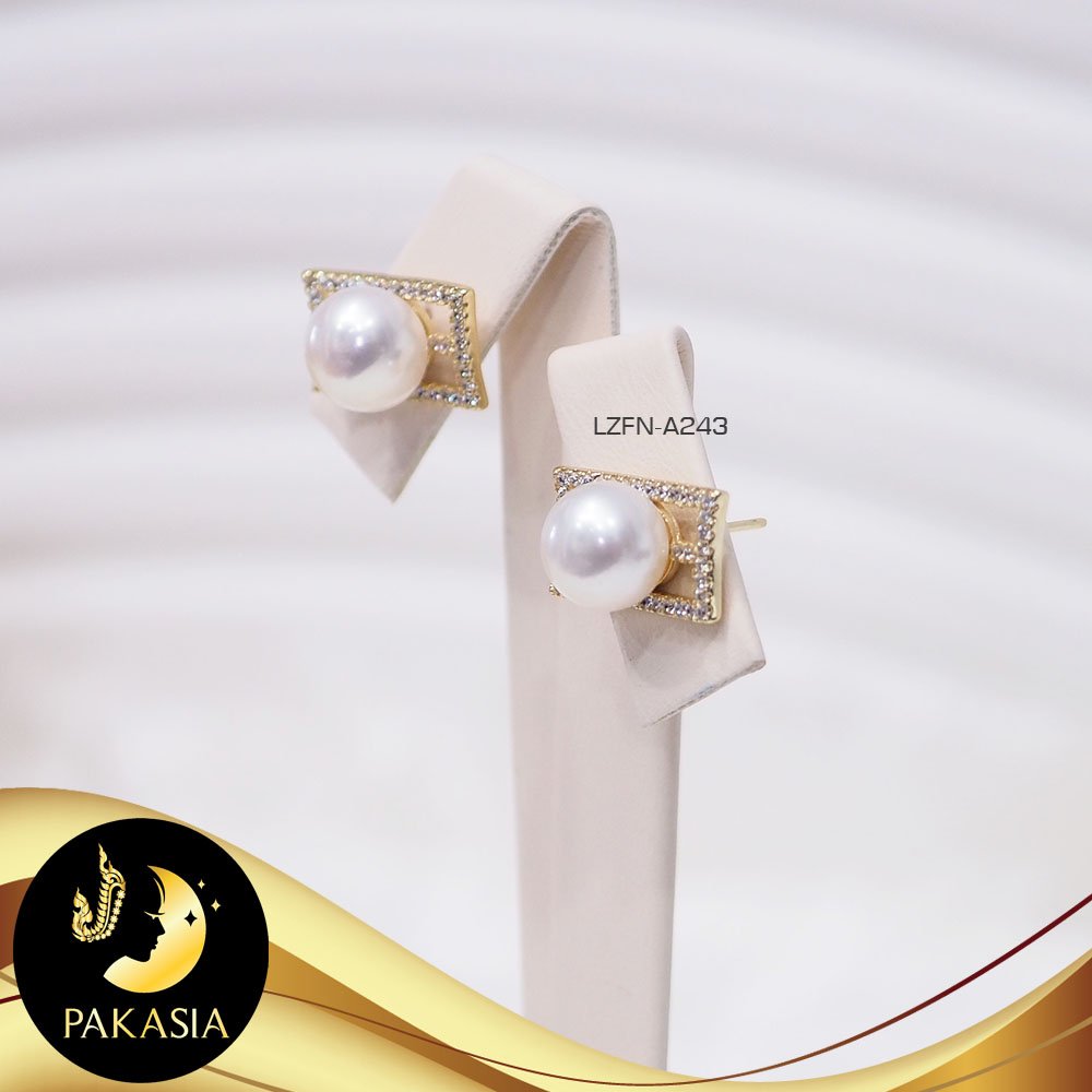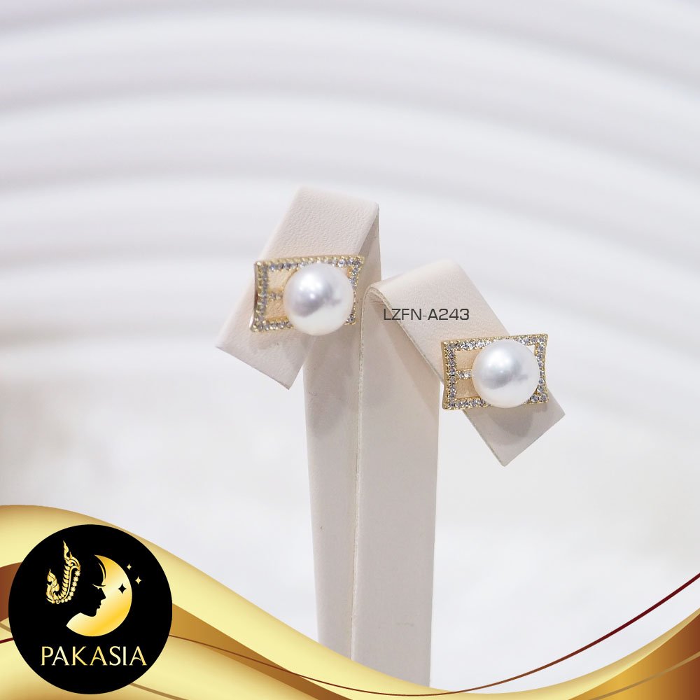ต่างหูมุกติดหูหัวเข็มขัดประดับเพชร มุกน้ำจืดคัดเกรด สีขาว ทรงเกือบกลม ขนาด 8.5 mm เกรด AA+ ตัวเรือนเงินแท้ 92.5 ชุบทอง ประดับเพชร CZ เม็ดมุกมีรอยธรรมชาติ ±3% สินค้าทุกชิ้นมีใบรับประกันมุกแท้ (Certificate of Guarantee) เม็ดมุกแต่ละเม็ดมีลักษณะเฉพาะตัว อาจมีรูปทรง ขนาด และสีต่างกันเล็กน้อย จากภาพโฆษณา