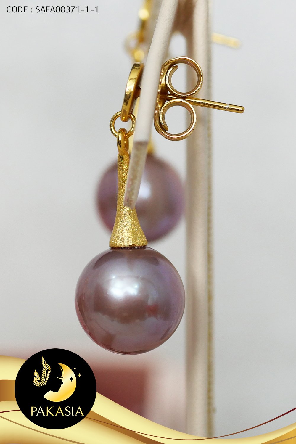 ต่างหูวงกลมติดหู กรวยห้อยมุกน้ำจืด Edison คัดเกรด สีม่วง ทรงกลม ขนาด 11 mm เกรด AA+ ตัวเรือนเงินแท้ 92.5 ชุบทอง พ่นทราย เม็ดมุกมีรอยธรรมชาติ ± 5% สินค้าทุกชิ้นมีใบรับประกันมุกแท้ (Certificate of Guarantee) เม็ดมุกแต่ละเม็ดมีลักษณะเฉพาะตัว อาจมีรูปทรง ขนาด และสีต่างกันเล็กน้อย จากภาพโฆษณา