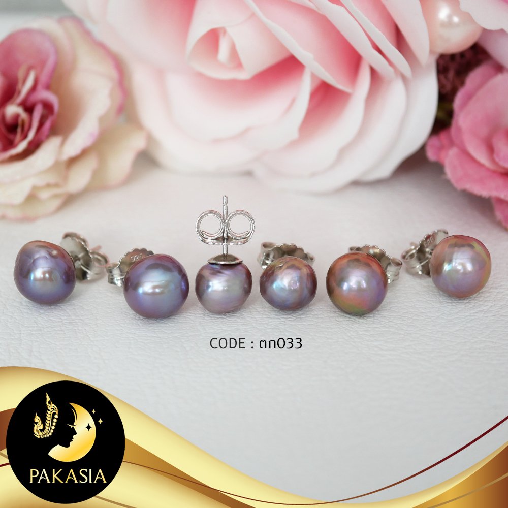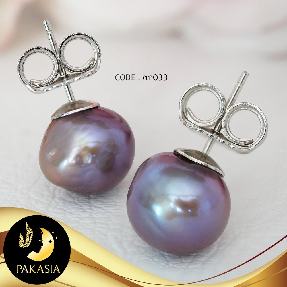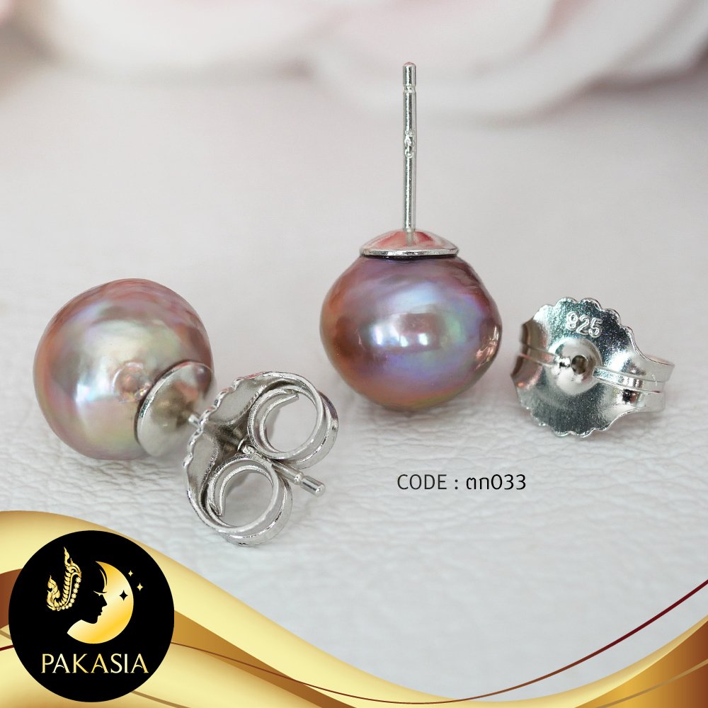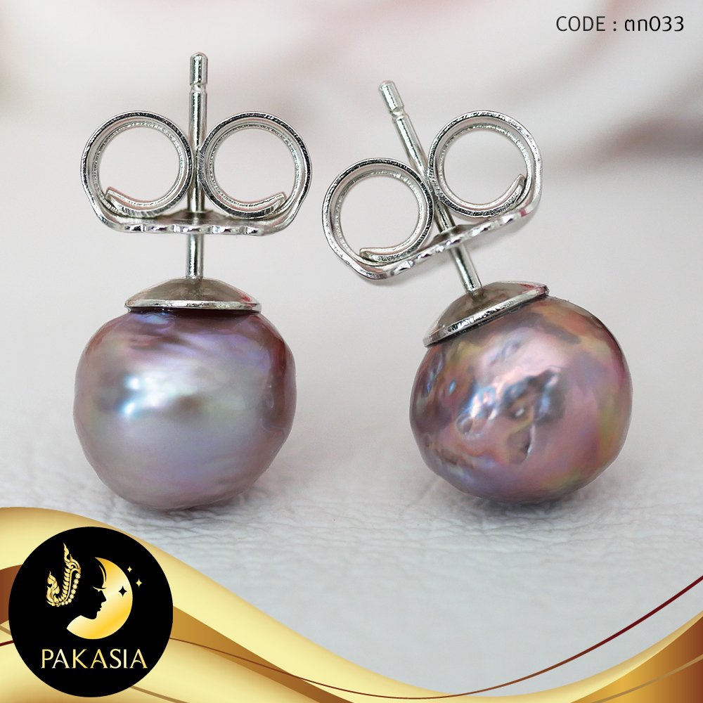ต่างหู Stud ติดหูมุกเม็ดเดี่ยว มุก Ripple Pearl น้ำจืดคัดเกรด สีม่วง ทรงบารอก ขนาด 10-11 mm เกรด AA+ ตัวเรือน Stud ติดหู เงินแท้ 92.5 ชุบทองคำขาว / ตก033 / 10.3.64