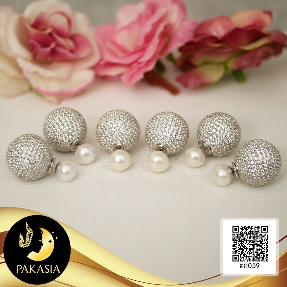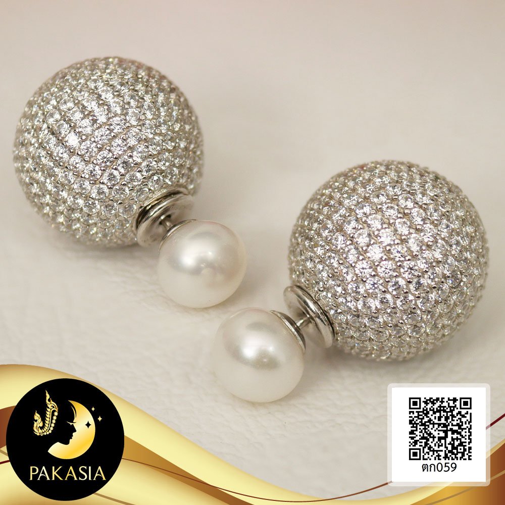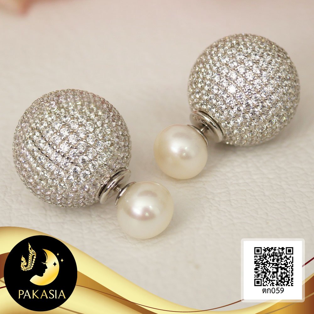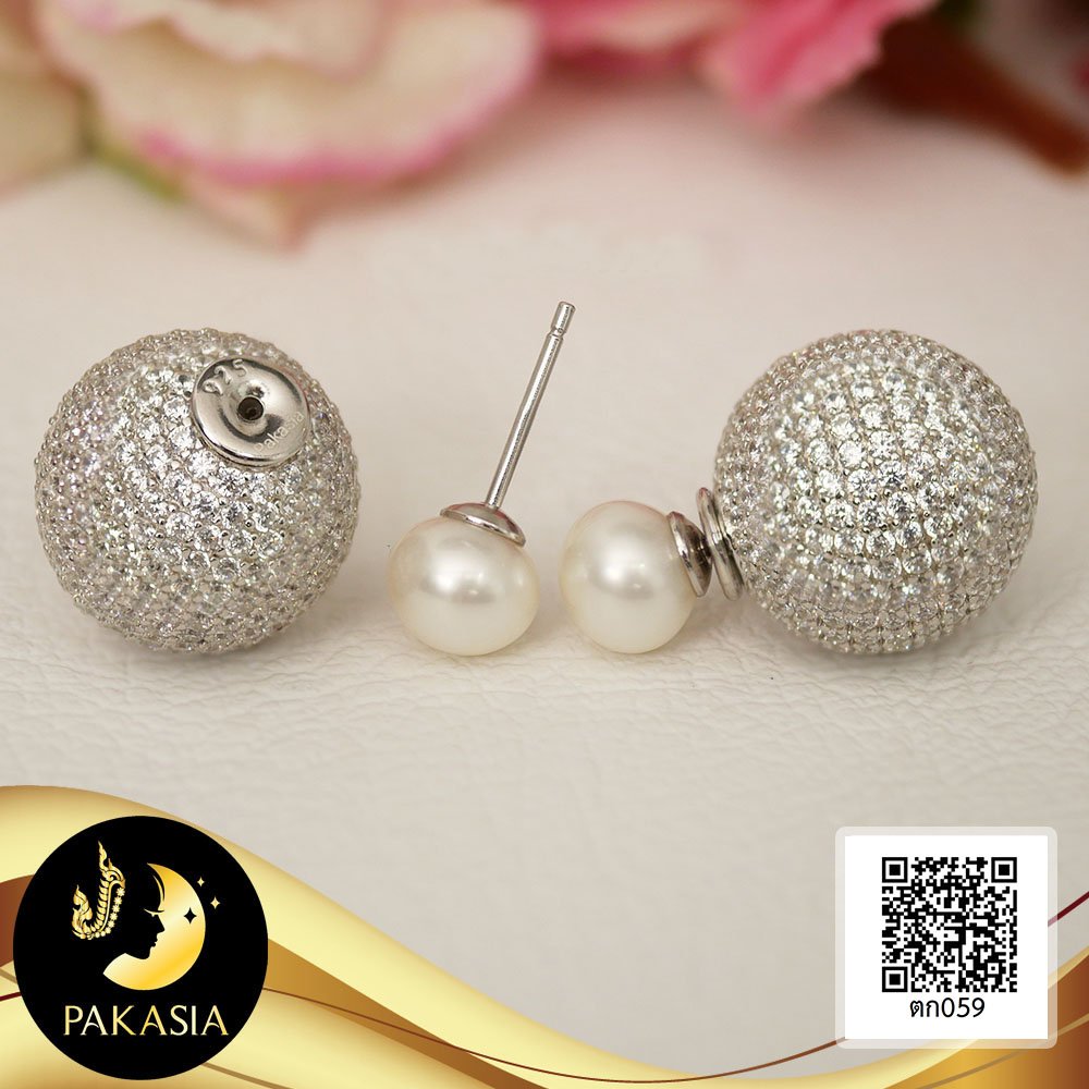 ต่างหู Stud สไตล์ดิออร์ ทับหลังบอลใหญ่ประดับเพชร มุกน้ำจืดคัดเกรด สีขาว ทรงเกือบกลม ขนาด 6 mm เกรด AA+ ตัวเรือนทับหลังบอลใหญ่ เงินแท้ 92.5 ชุบทองคำขาว ประดับเพชร CZ เม็ดมุกมีรอยธรรมชาติเพียง 5% สินค้าทุกชิ้นมีใบรับประกันมุกแท้ (Certificate of Guarantee) เม็ดมุกแต่ละเม็ดมีลักษณะเฉพาะตัว อาจมีรูปทรง ขนาด และสีต่างกันเล็กน้อย จากภาพโฆษณา