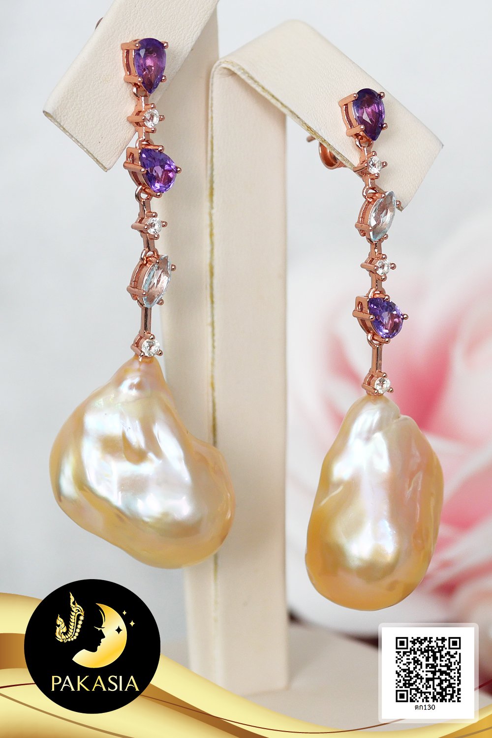 ต่างหูพลอย 3 สหายห้อยไข่มุก ไข่มุกน้ำจืดคัดเกรด สีม่วง-รุ้ง ทรงบารอก ขนาด 16-20 mm เกรด AA+ ตัวเรือนต่างหูเงินแท้ 92.5 ชุบ Rose Gold ห้อยพลอยแท้ 3 สหาย Amethyst, White Topaz, Sky Blue Topaz รวม 4 ct ความยาวต่างหู ประมาณ 4 cm เม็ดมุกแท้มีรอยธรรมชาติ ±5% สินค้าทุกชิ้นมีใบรับประกันมุกแท้ (Certificate of Guarantee) เม็ดมุกแต่ละเม็ดมีลักษณะเฉพาะตัว อาจมีรูปทรง ขนาด และสีต่างกันเล็กน้อย จากภาพโฆษณา