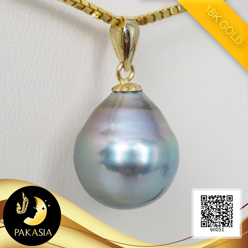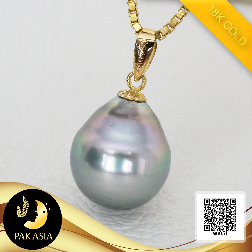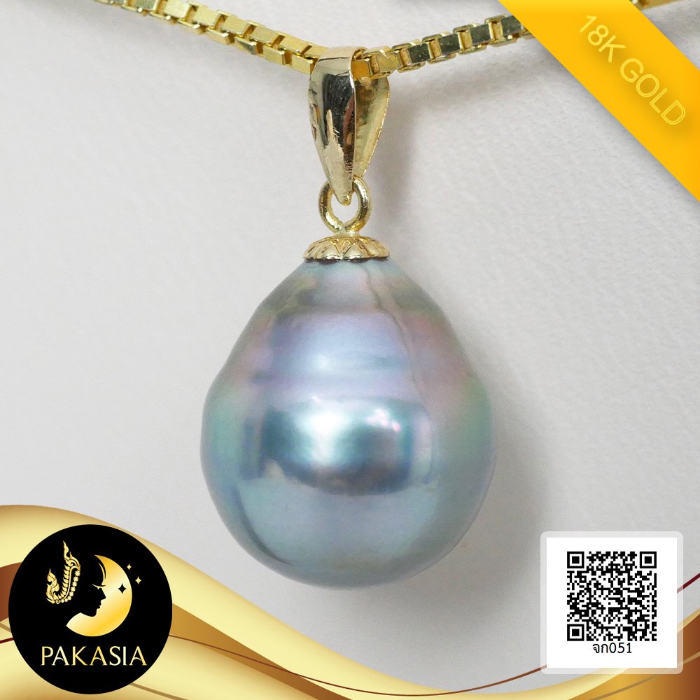 (ไม่รวมสร้อย) จี้ไข่มุกเม็ดเดี่ยว จุกจี้จีบ ไข่มุกตาฮิติน้ำเค็มคัดเกรด สีดำประกายเทา ทรงหยดน้ำ-บารอก ขนาด 10mm. เกรด AAA ตัวเรือนจุกจี้จีบ ทองคำแท้ 18K เม็ดมุกมีรอยธรรมชาติ ±5% สินค้าทุกชิ้นมีใบรับประกันมุกแท้ (Certificate of Guarantee) เม็ดมุกแต่ละเม็ดมีลักษณะเฉพาะตัว อาจมีรูปทรง ขนาด และสีต่างกันเล็กน้อย จากภาพโฆษณา