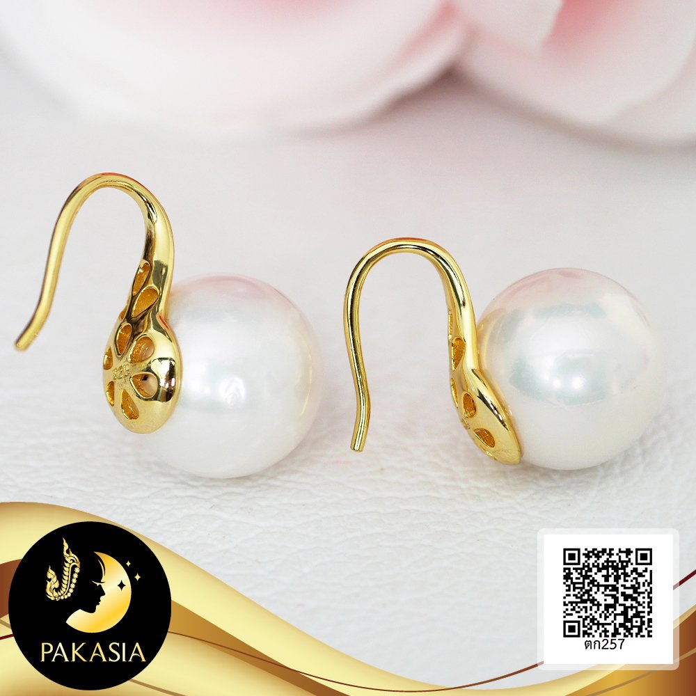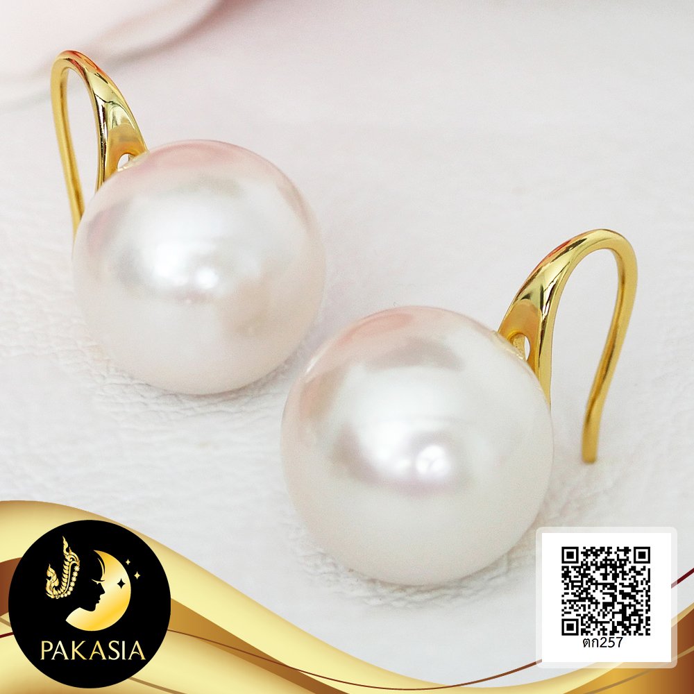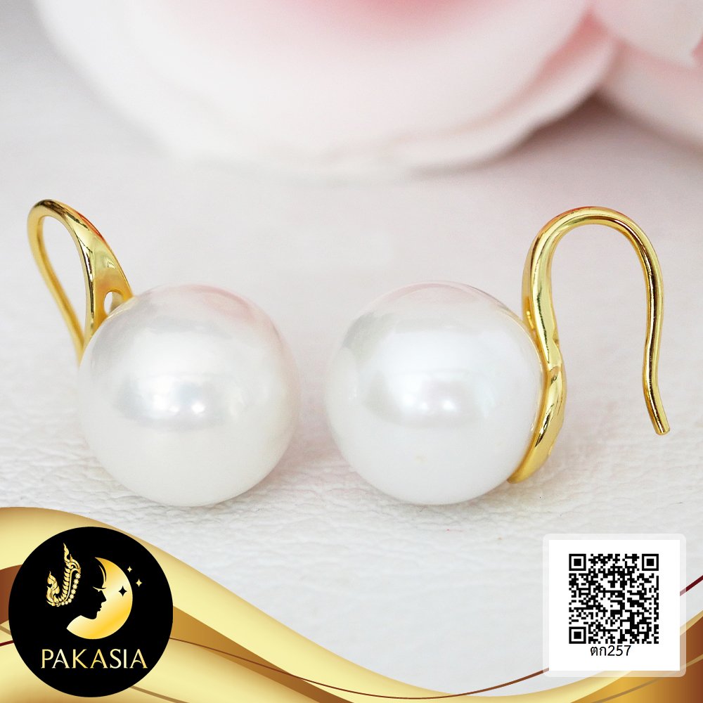 ต่างหู Fish Hooks ช้อนใหญ่ไข่มุก Edison น้ำจืดคัดเกรด สีขาว ทรงกลม ขนาด 13 mm เกรด AA ตัวเรือนต่างหู Fish Hooks เงินแท้ 92.5 ชุบทอง / 19.5.64