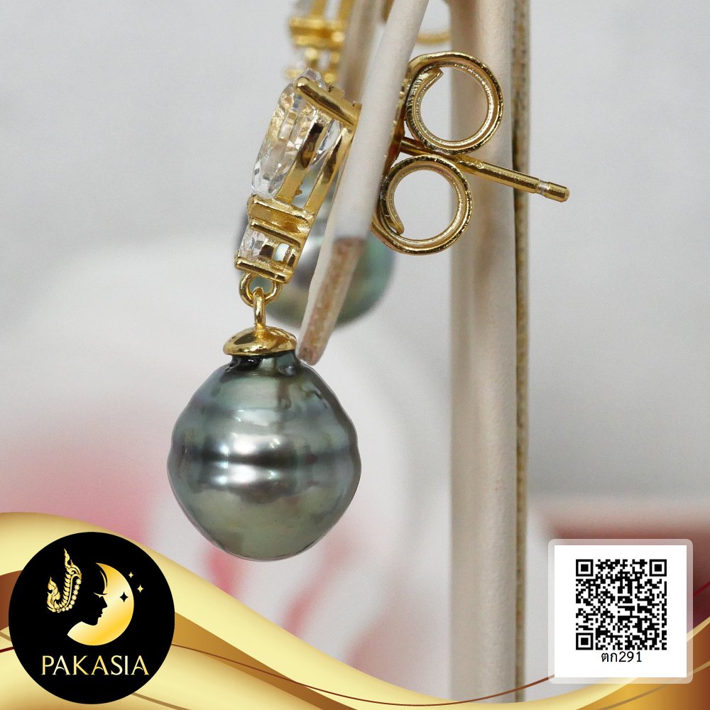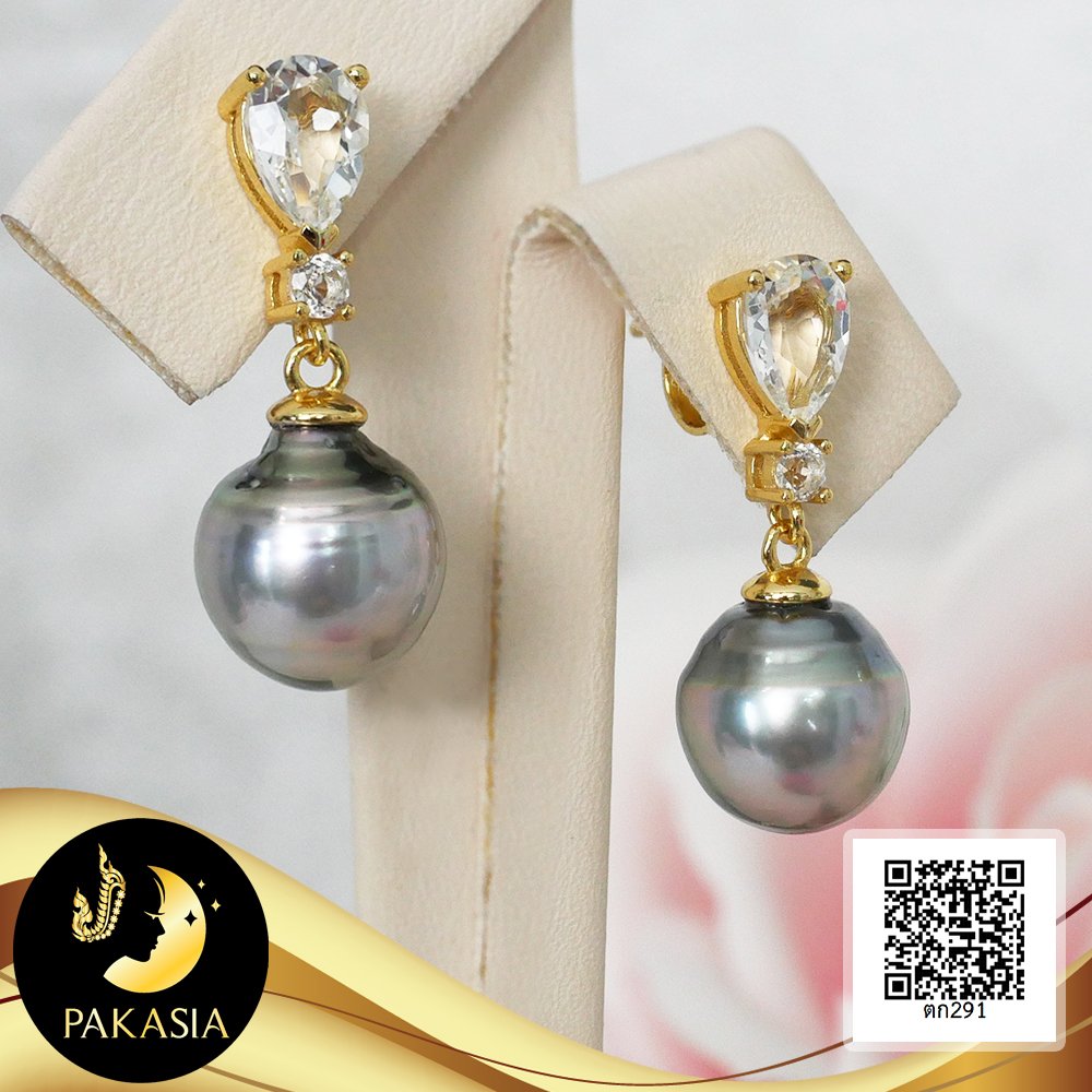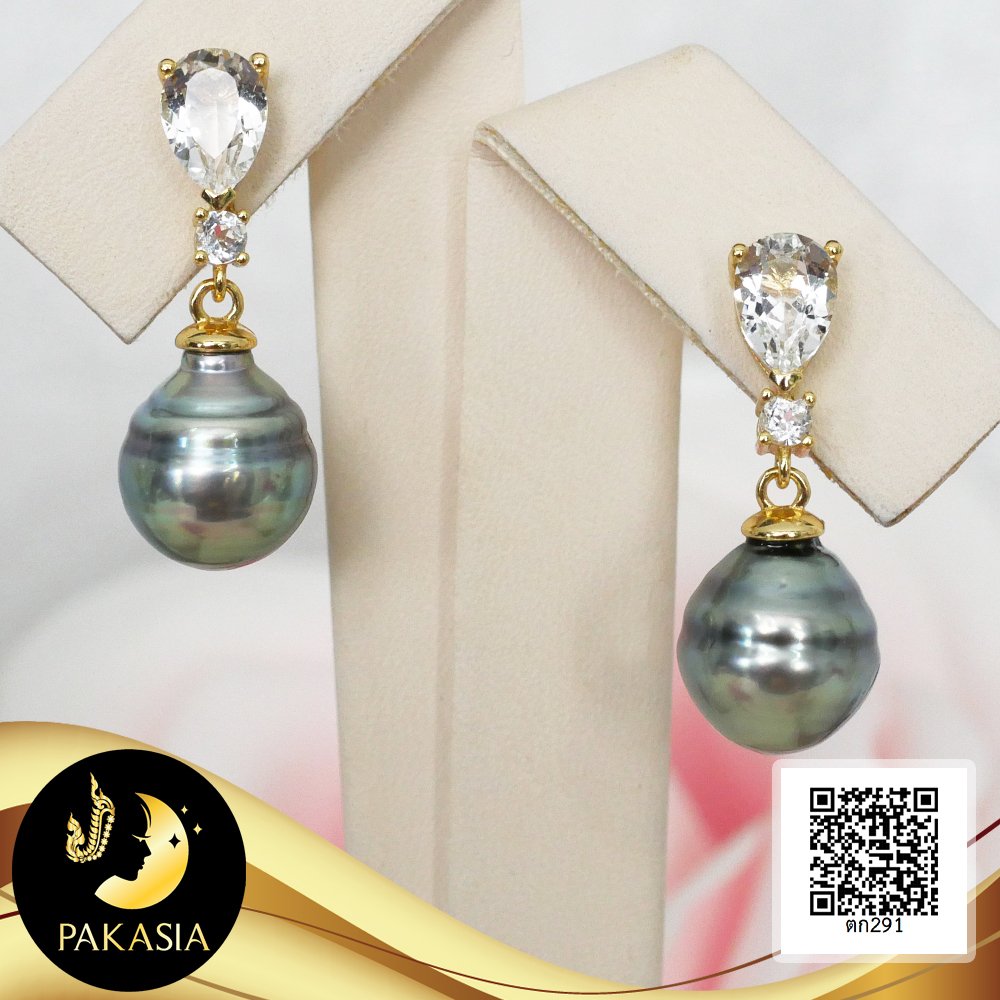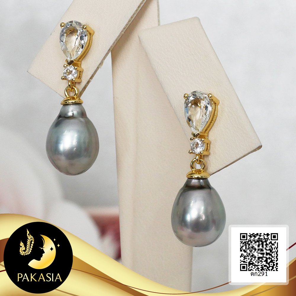 ต่างหูพลอยแท้ทรงหยดน้ำห้อยไข่มุกตาฮิติน้ำเค็มคัดเกรด สีดำ-เทา ทรงหยดน้ำ-บารอก ขนาด 8-9 mm เกรด AA+ ตัวเรือนต่างหู เงินแท้ 92.5 ชุบทอง ประดับพลอยแท้ White Topaz ทรงหยดน้ำและทรงกลม 2.2 ct เม็ดมุกมีรอยธรรมชาติ ±5% สินค้าทุกชิ้นมีใบรับประกันมุกแท้ (Certificate of Guarantee) เม็ดมุกแต่ละเม็ดมีลักษณะเฉพาะตัว อาจมีรูปทรง ขนาด และสีต่างกันเล็กน้อย จากภาพโฆษณา