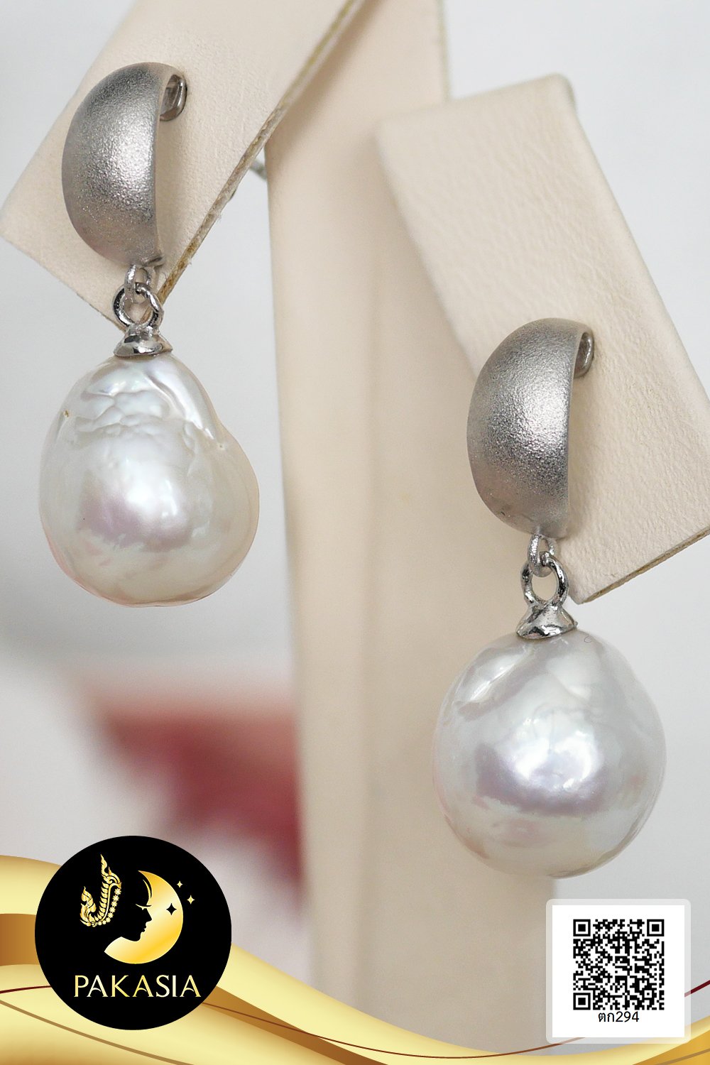 ต่างหูใบเรือห้อยไข่มุกเม็ดเดี่ยว ไข่มุกน้ำจืดคัดเกรด สีขาว ทรงบารอก ขนาด 11-12 mm เกรด A ตัวเรือนใบเรือ เงินแท้ 92.5 ชุบทองคำขาวด้าน เม็ดมุกมีรอยธรรมชาติ สินค้าทุกชิ้นมีใบรับประกันมุกแท้ (Certificate of Guarantee) เม็ดมุกแต่ละเม็ดมีลักษณะเฉพาะตัว อาจมีรูปทรง ขนาด และสีต่างกันเล็กน้อย จากภาพโฆษณา