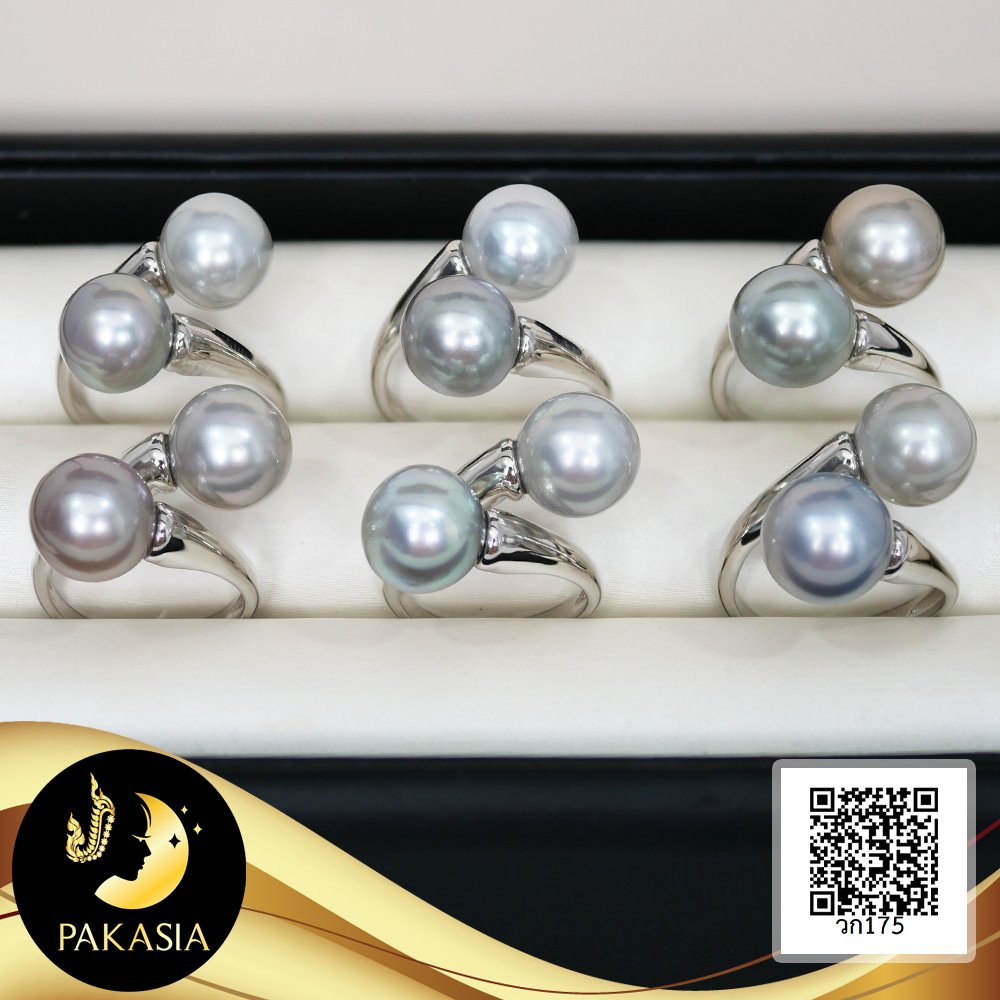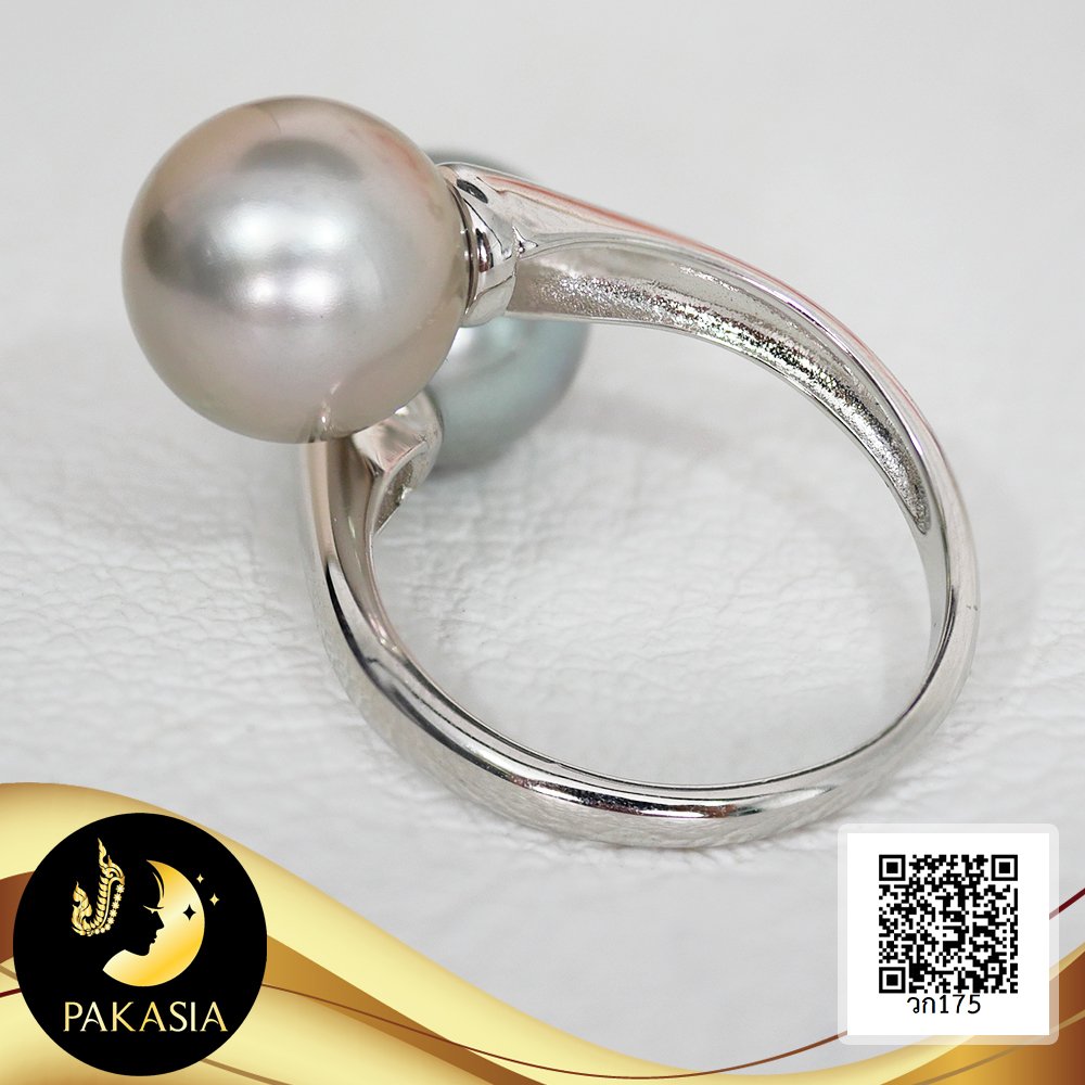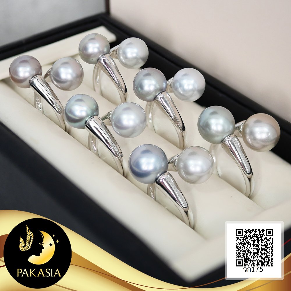 แหวน Open ring หัวไขว้ไข่มุกทวิน ไข่มุกตาฮิติน้ำเค็มคัดเกรด สีเทา ทรงกลม ขนาด 10 mm เกรด AA+ ตัวเรือนแหวน Open ring กรวยเกลี้ยง เงินแท้ 92.5 ชุบทองคำขาว เม็ดมุกมีรอยธรรมชาติ 5% สินค้าทุกชิ้นมีใบรับประกันมุกแท้ (Certificate of Guarantee) เม็ดมุกแต่ละเม็ดมีลักษณะเฉพาะตัว อาจมีรูปทรง ขนาด และสีต่างกันเล็กน้อย จากภาพโฆษณา