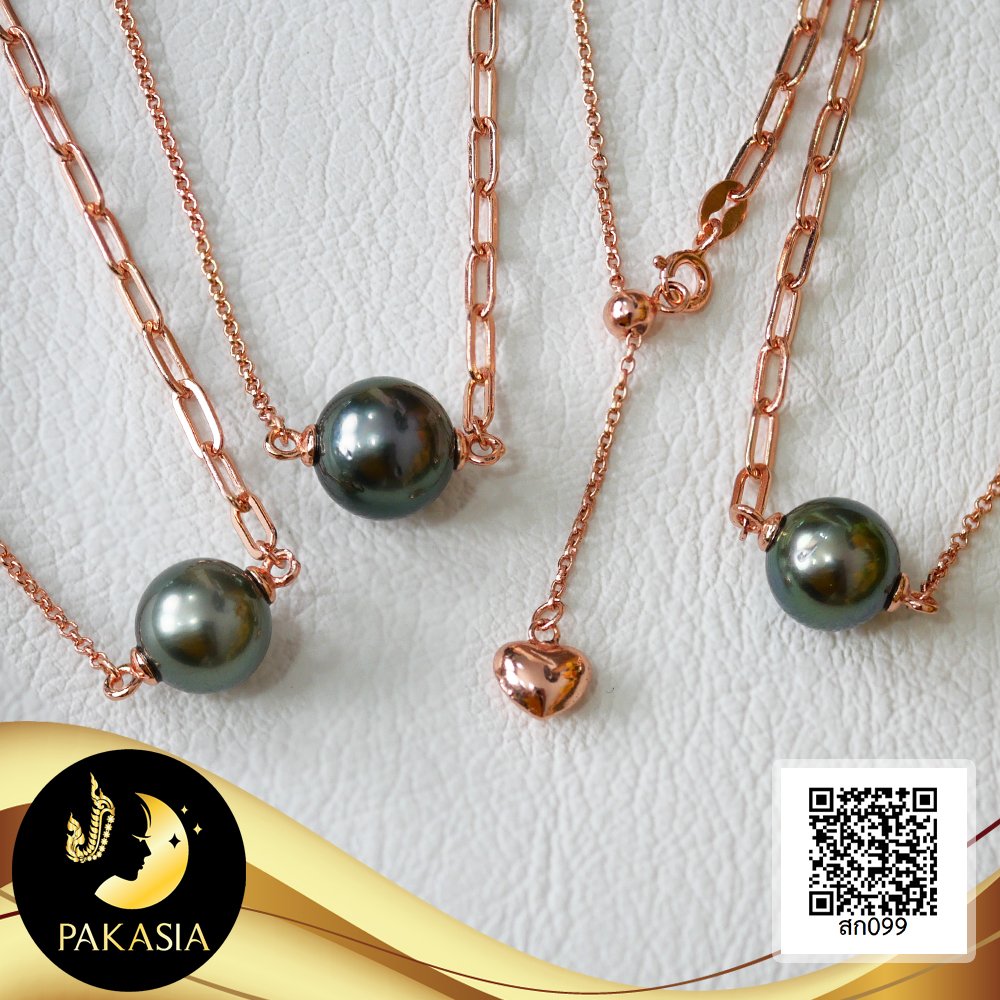 สร้อยคอ สร้อยโซ่ 2 Style ความยาวประมาณ 19" ห้อยไข่มุกตาฮิติเม็ดเดี่ยว ไข่มุกตาฮิติน้ำเค็มคัดเกรด สีดำ ทรงกลม ขนาด 10 mm เกรด AA ตัวเรือนตะขอสปริงกลม Stopper กลมเกลี้ยง ปรับรูดความยาวได้ ปลายสร้อยห้อยหัวใจ เงินแท้ 92.5 ชุบ Rose Gold / 21.7.64