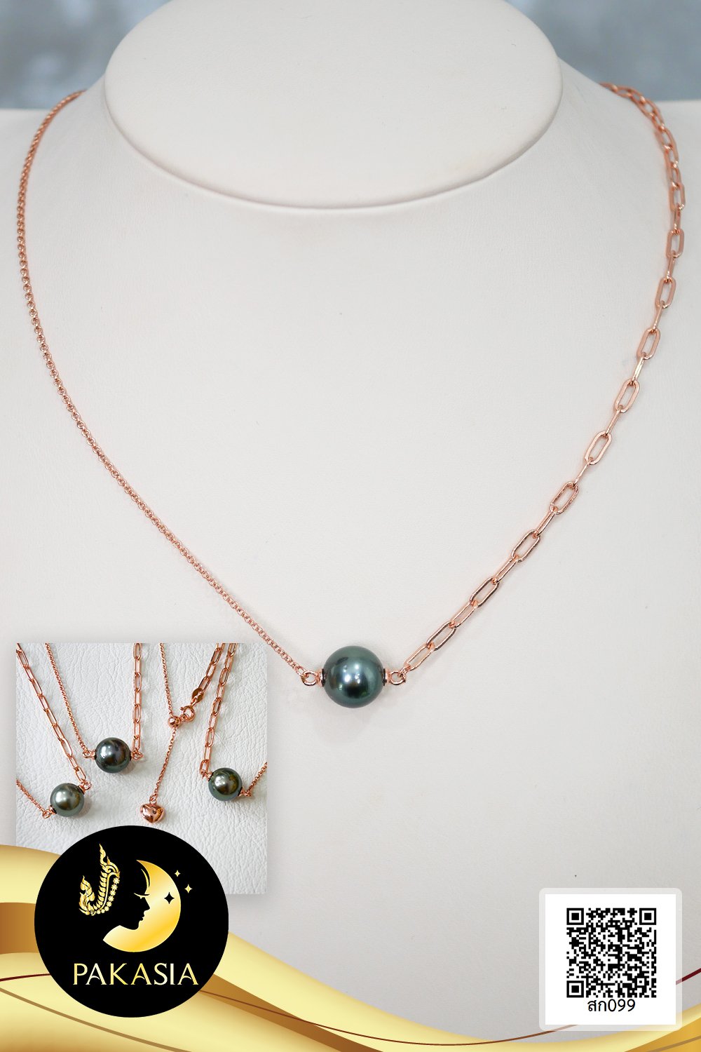 สร้อยคอ สร้อยโซ่ 2 Style ความยาวประมาณ 19" ห้อยไข่มุกตาฮิติเม็ดเดี่ยว ไข่มุกตาฮิติน้ำเค็มคัดเกรด สีดำ ทรงกลม ขนาด 10 mm เกรด AA ตัวเรือนตะขอสปริงกลม Stopper กลมเกลี้ยง ปรับรูดความยาวได้ ปลายสร้อยห้อยหัวใจ เงินแท้ 92.5 ชุบ Rose Gold เม็ดมุกมีรอยธรรมชาติ สินค้าทุกชิ้นมีใบรับประกันมุกแท้ (Certificate of Guarantee) เม็ดมุกแต่ละเม็ดมีลักษณะเฉพาะตัว อาจมีรูปทรง ขนาด และสีต่างกันเล็กน้อย จากภาพโฆษณา