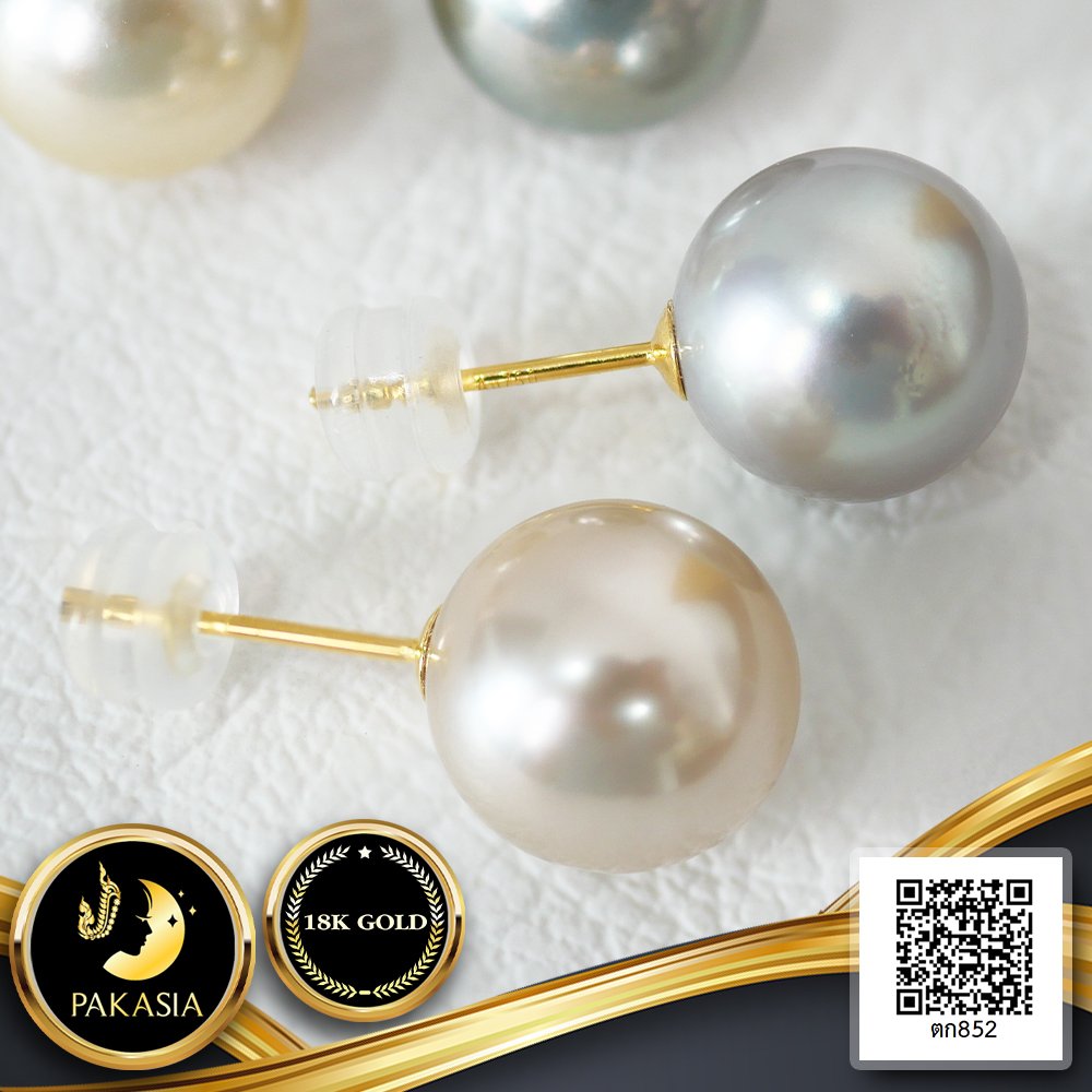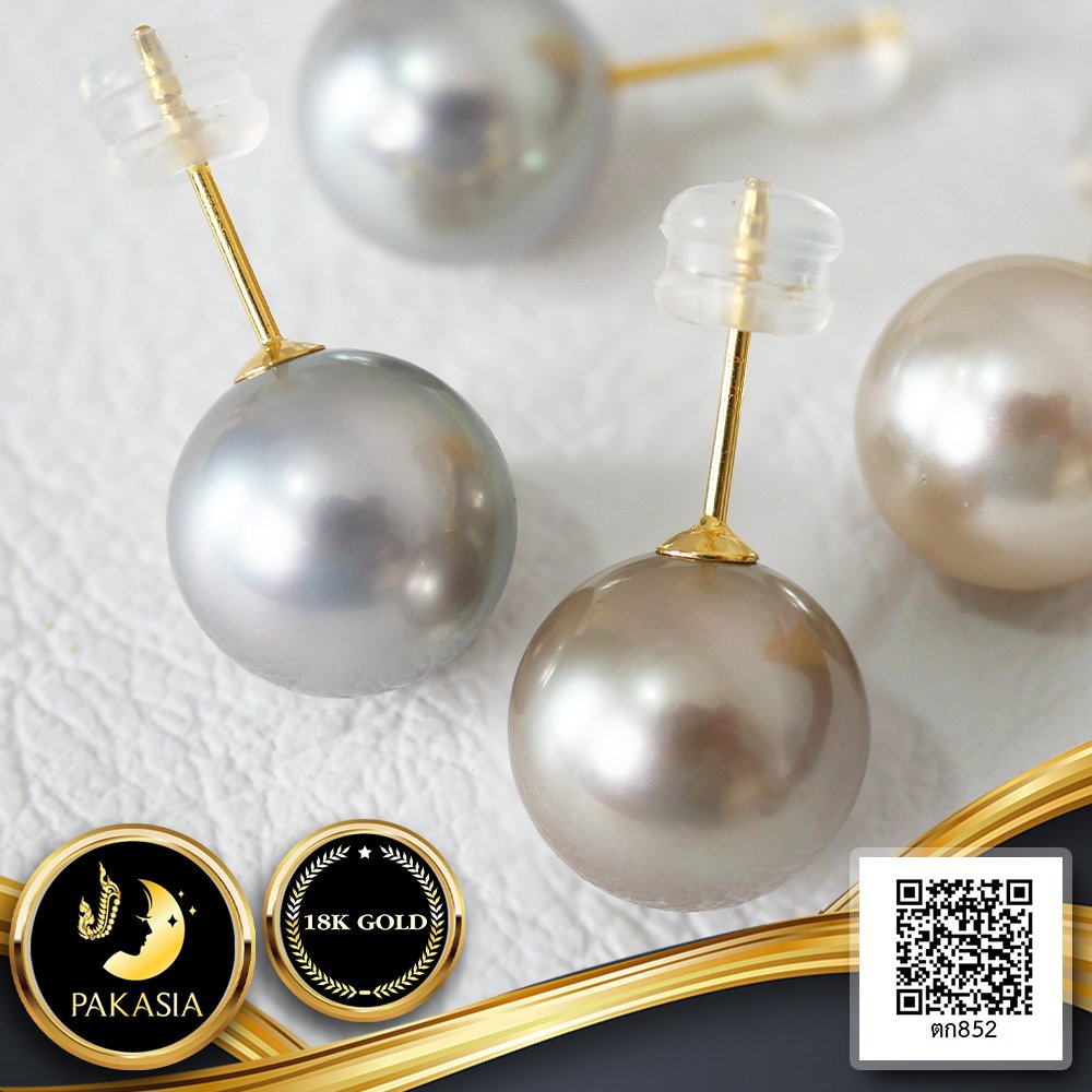 ต่างหู Stud ติดหูมุกเม็ดเดี่ยว ไข่มุกตาฮิติน้ำเค็มคัดเกรด สี Fancy Color ทรงเกือบกลม ขนาด 9-10 mm เกรด AA+ ตัวเรือนต่างหูแบบ Stud ทองแท้ 18K เม็ดมุกมีรอยธรรมชาติ ±5% สินค้าทุกชิ้นมีใบรับประกันมุกแท้ (Certificate of Guarantee) เม็ดมุกแต่ละเม็ดมีลักษณะเฉพาะตัว อาจมีรูปทรง ขนาด และสีต่างกันเล็กน้อย จากภาพโฆษณา
