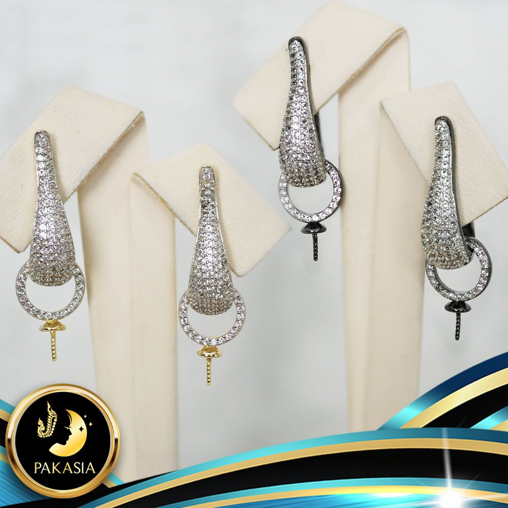อะไหล่ตัวเรือนต่างหู Jacket ตัวเรือน Latch Back ยาว ประดับพลอยแท้ White Topaz สำหรับห้อยไข่มุก ตัวเรือนเงินแท้ 92.5 ขนาด 7.5 mm x 27.0 mm มีให้เลือก 3 สี คือ สีทอง สีทองคำขาว และสี Pink Gold