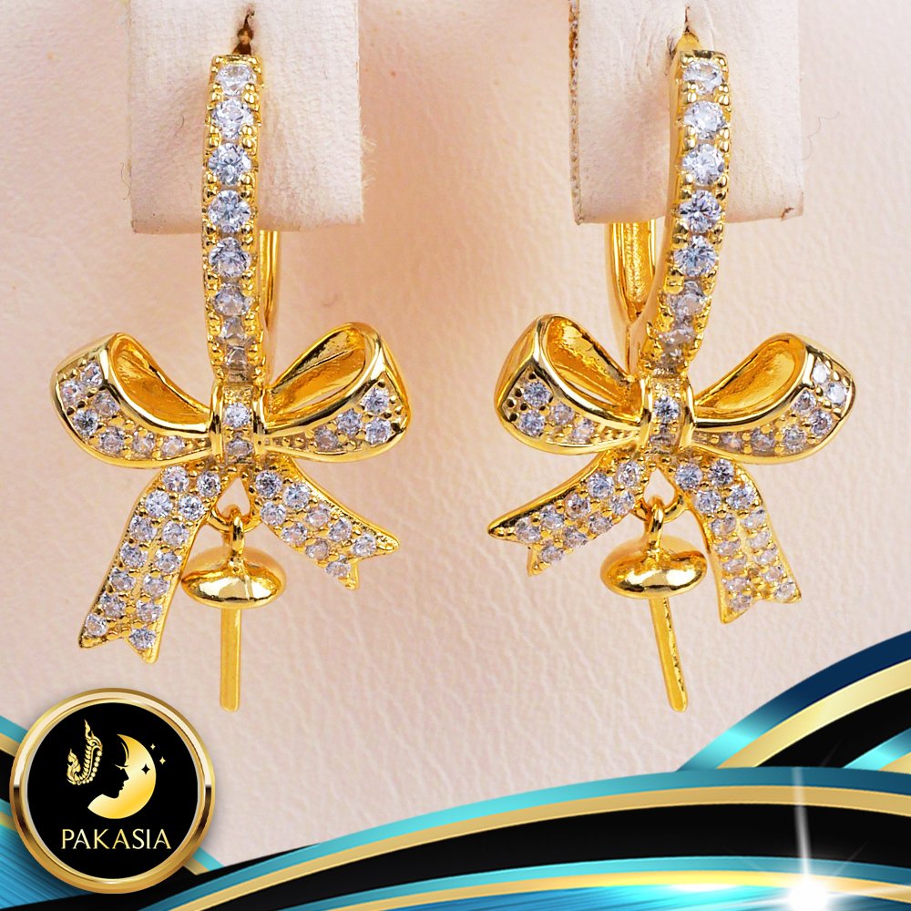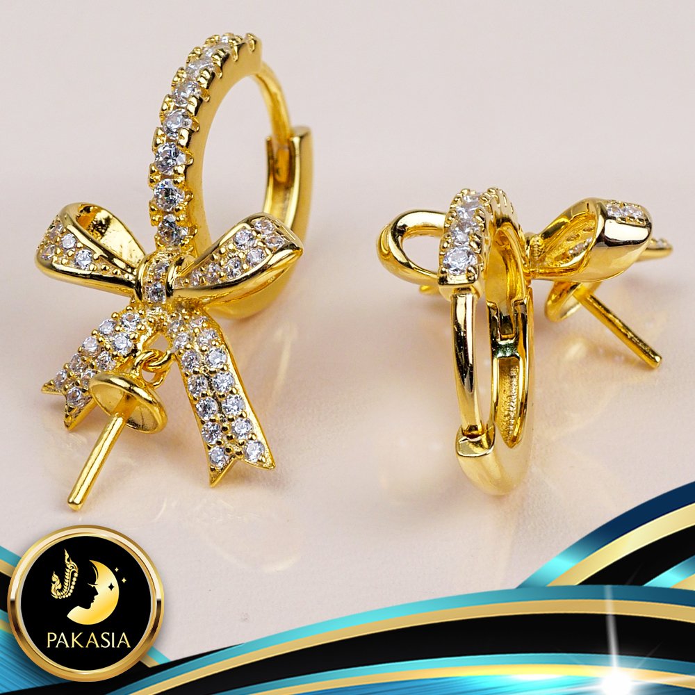 อะไหล่ตัวเรือนต่างหู Huggie โบว์ประดับเพชร ห้อยไข่มุกพร้อมทับหลัง ขนาดตัวเรือน 1.25 x 2.5 cm. ตัวเรือนต่างหูแบบ Huggie วัสดุเงินแท้ 925 ประดับเพชร CZ ตัวเรือนมี 2 สีให้เลือก คือ ชุบสีทอง และ ชุบสีทองคำขาว