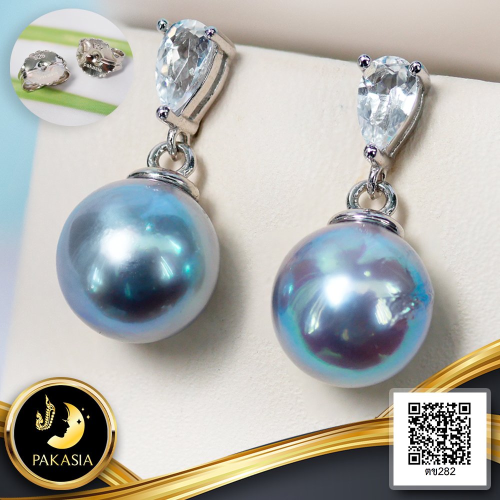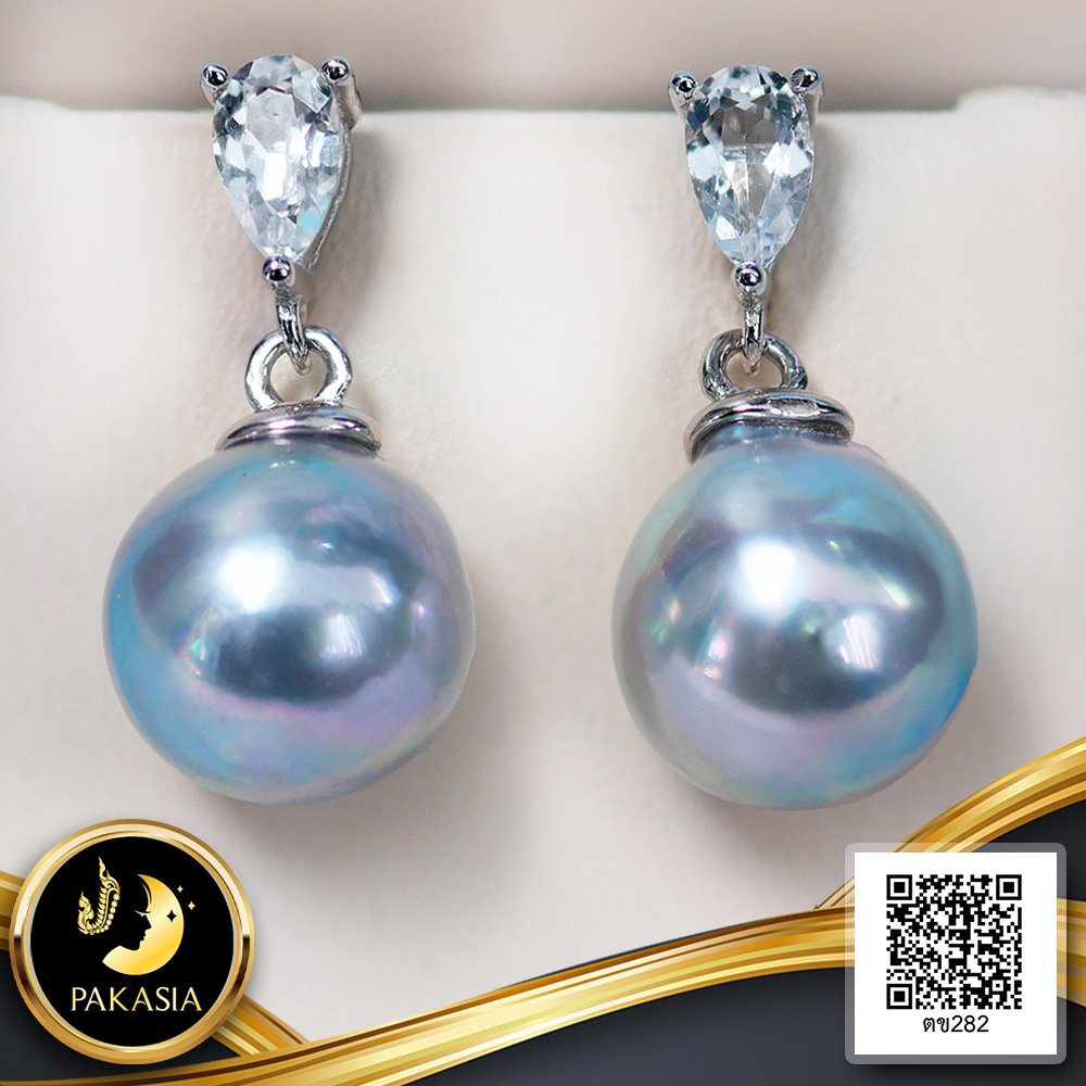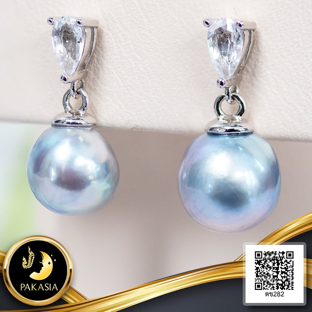 ต่างหูพลอยหยดน้ำ Mini ห้อยไข่มุก Akoya สี Blue Rose (Trade Term) ทรงบารอก ขนาด 8.0-8.5 mm เกรด AA+ ตัวเรือนต่างหู วัสดุเงินแท้ 925 ชุบสีทองคำขาว ประดับพลอยแท้ White Topaz รวม 0.8 ct. เม็ดมุกมีรอยธรรมชาติ±5% สินค้าทุกชิ้นมีใบรับประกันมุกแท้ (Certificate of Guarantee) เม็ดมุกแต่ละเม็ดมีลักษณะเฉพาะตัว อาจมีรูปทรง ขนาด และสีต่างกันเล็กน้อย จากภาพโฆษณา