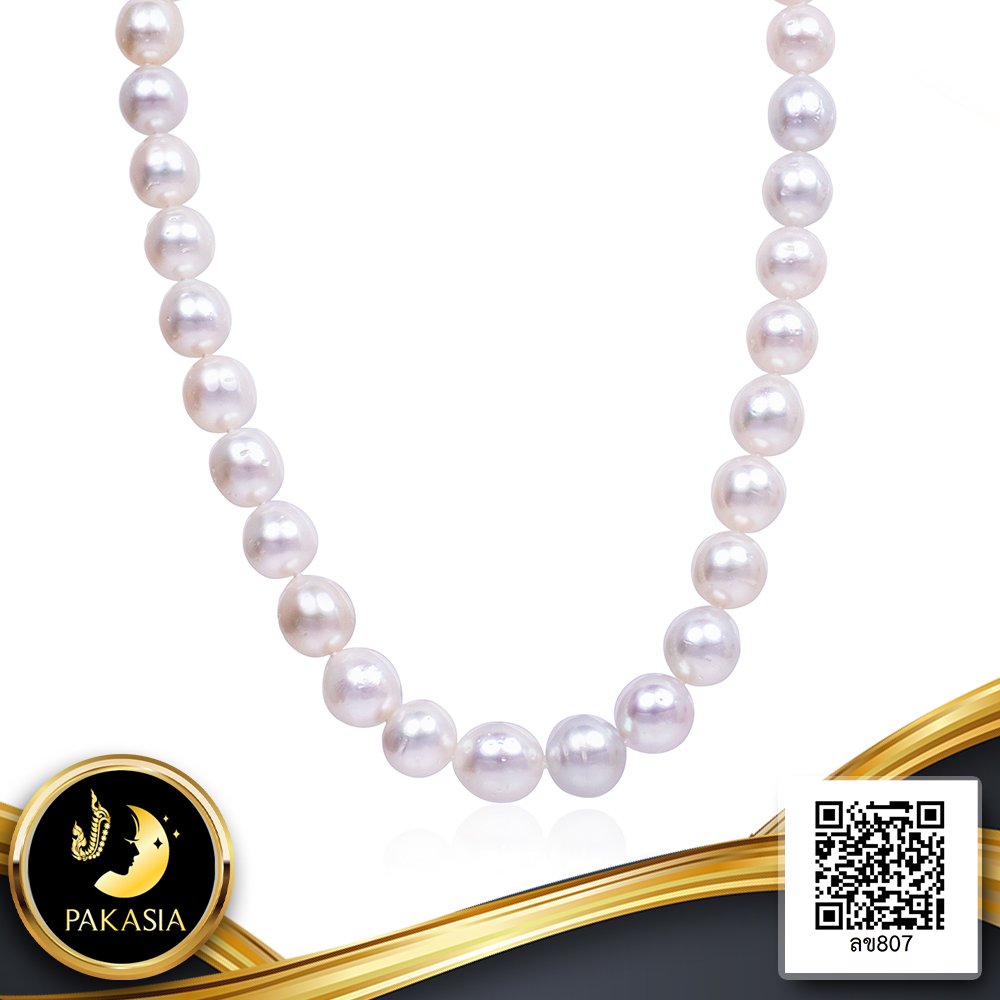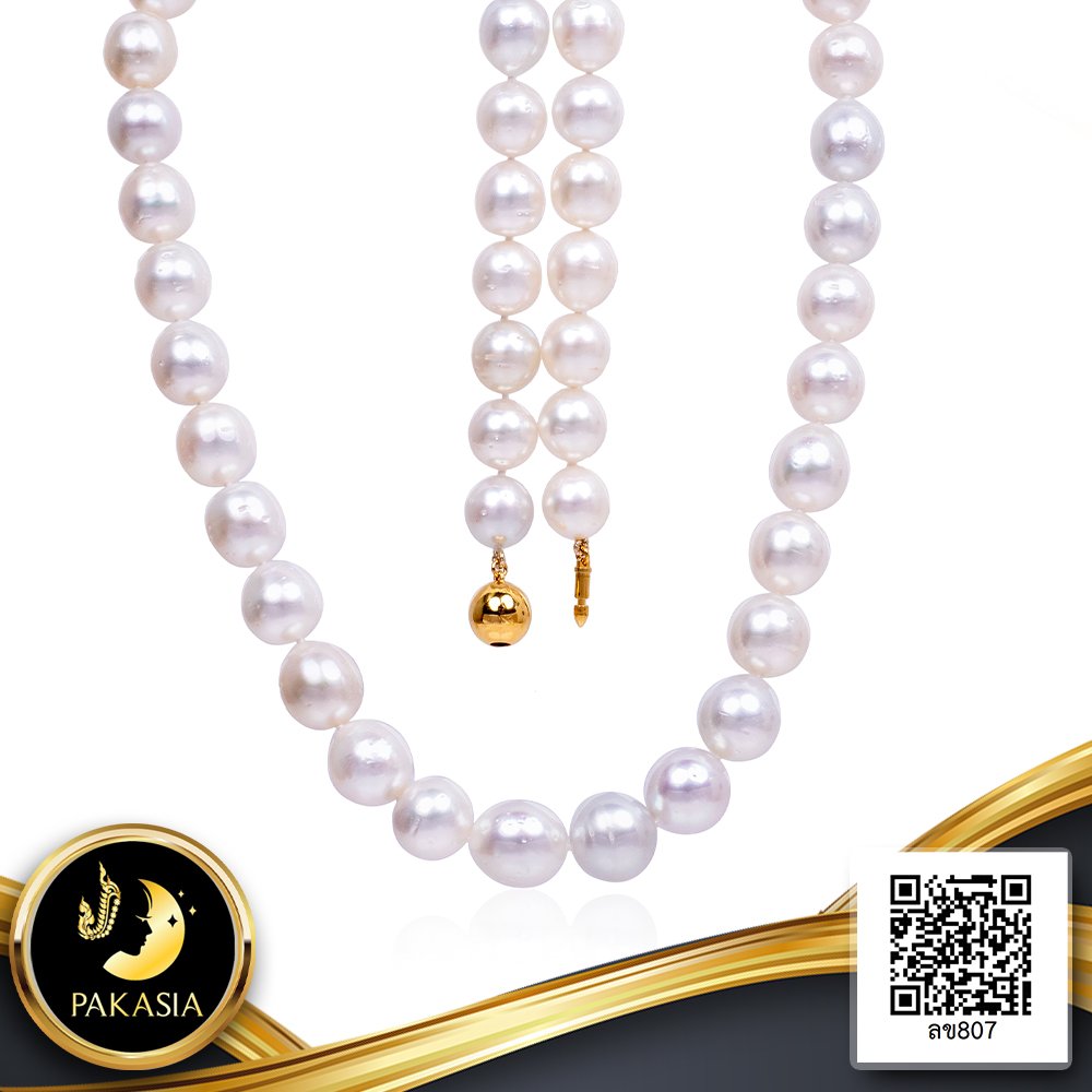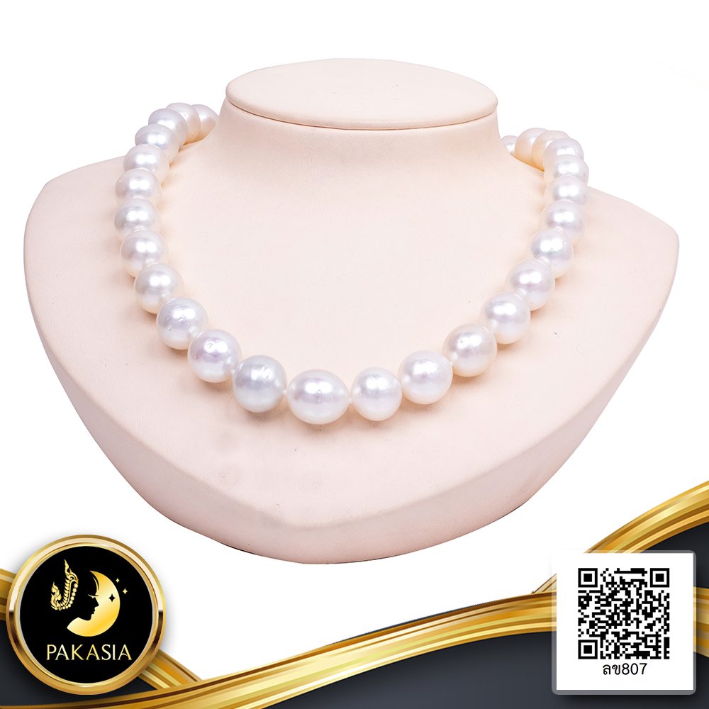 สร้อยคอไข่มุก South Sea ล้วนแบบไล่ระดับ (Graduated Necklace) ความยาวประมาณ 18" ไข่มุก South Sea สายพันธุ์น้ำเค็มคัดเกรด สีขาว ทรงไข่ ขนาด 12.0-13.5 mm. เกรด A ตัวเรือนตะขอบอลกลมเกลี้ยงแบบ Push Stick Clasp วัสดุเงินแท้ 925 ชุบสีทอง ร้อยผูกปมทุกเม็ดด้วยไหมอย่างดีนำเข้าจากประเทศญี่ปุ่น เม็ดมุกมีรอยธรรมชาติ (มาตรฐาน PGS) สินค้าทุกชิ้นมีใบรับประกันมุกแท้ (Certificate of Guarantee) เม็ดมุกแต่ละเม็ดมีลักษณะเฉพาะตัว อาจมีรูปทรง ขนาด และสีต่างกันเล็กน้อย จากภาพโฆษณา