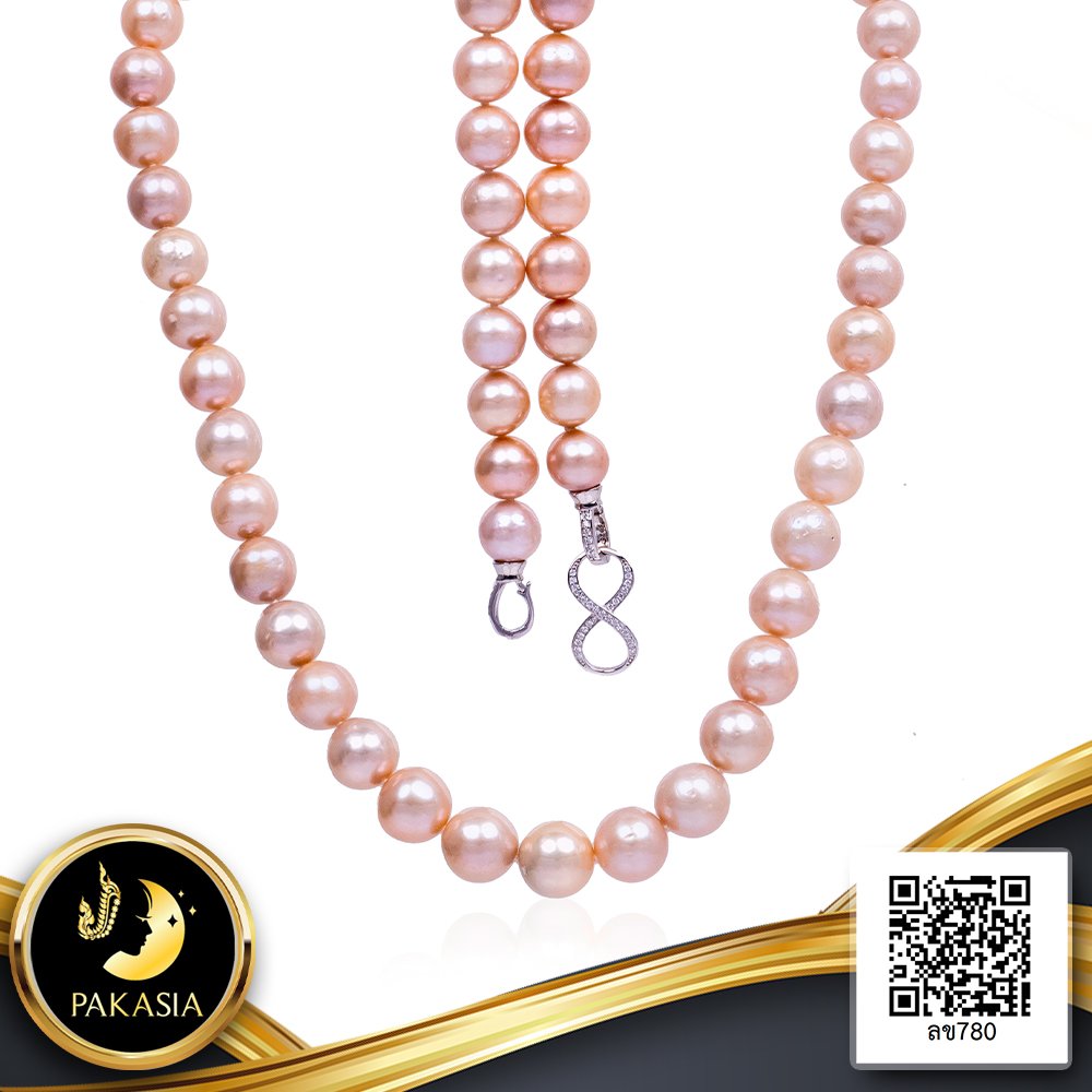 สร้อยคอไข่มุก Freshwater Pearl ล้วนแบบไล่ระดับ (Graduated Necklace) ความยาว 17.5" ไข่มุก Freshwater Pearl สายพันธุ์น้ำจืดคัดเกรด สีโอลด์โรส ทรงบารอก-เกือบกลม ขนาด 9.5-11.0 mm. เกรด B-A ตัวเรือนตะขอ Infinity ปลายงับ 2 ด้าน วัสดุเงินแท้ 925 ชุบสีทองคำขาว ประดับเพชร CZ เม็ดมุกมีรอยธรรมชาติ (มาตรฐาน PGS) สินค้าทุกชิ้นมีใบรับประกันมุกแท้ (Certificate of Guarantee) เม็ดมุกแต่ละเม็ดมีลักษณะเฉพาะตัว อาจมีรูปทรง ขนาด และสีต่างกันเล็กน้อย จากภาพโฆษณา