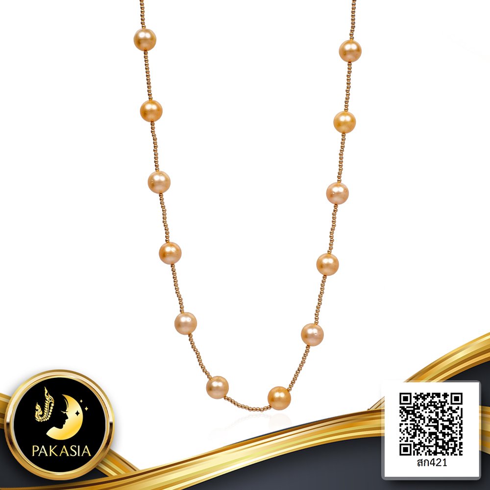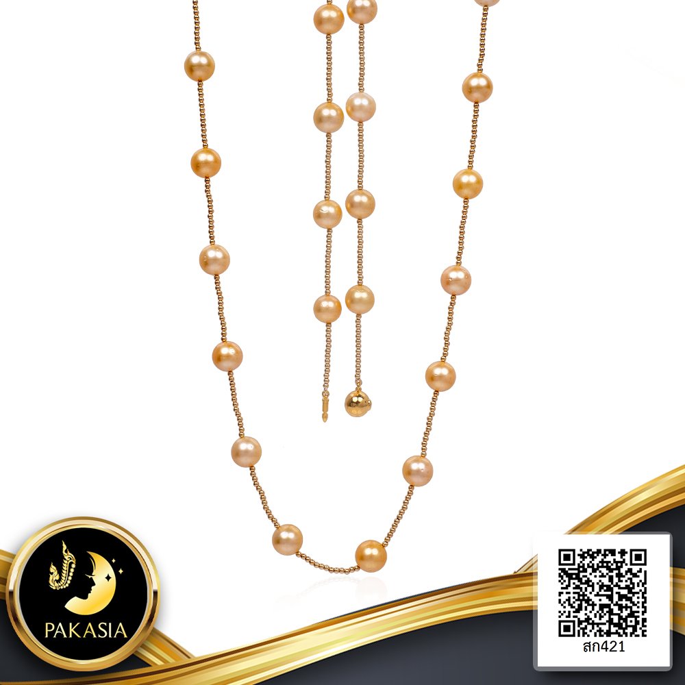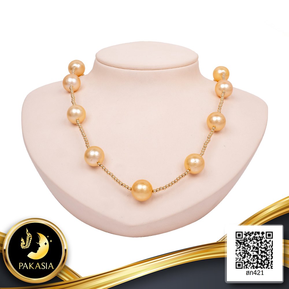 สร้อยคอไข่มุกระยะ (Station Necklace) คั่นบอล 14K Yellow Gold Filled ความยาว 28.5" ไข่มุก South Sea Pearl สายพันธุ์น้ำเค็มคัดเกรด สีทอง Light - Middle Gold ทรงกลม ขนาด 12.0-13.0 mm. เกรด AA ตัวเรือน ตะขอบอลกลมเกลี้ยง แบบ Push Stick Clasp วัสดุเงินแท้ 925 ชุบสีทอง เม็ดมุกมีรอยธรรมชาติ (มาตรฐาน PGS) สินค้าทุกชิ้นมีใบรับประกันมุกแท้ (Certificate of Guarantee) เม็ดมุกแต่ละเม็ดมีลักษณะเฉพาะตัว อาจมีรูปทรง ขนาด และสีต่างกันเล็กน้อย จากภาพโฆษณา