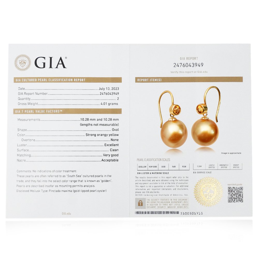 18K Yellow Gold, Citrine with GIA Cultured Pearl Classification Report No. 2476043949