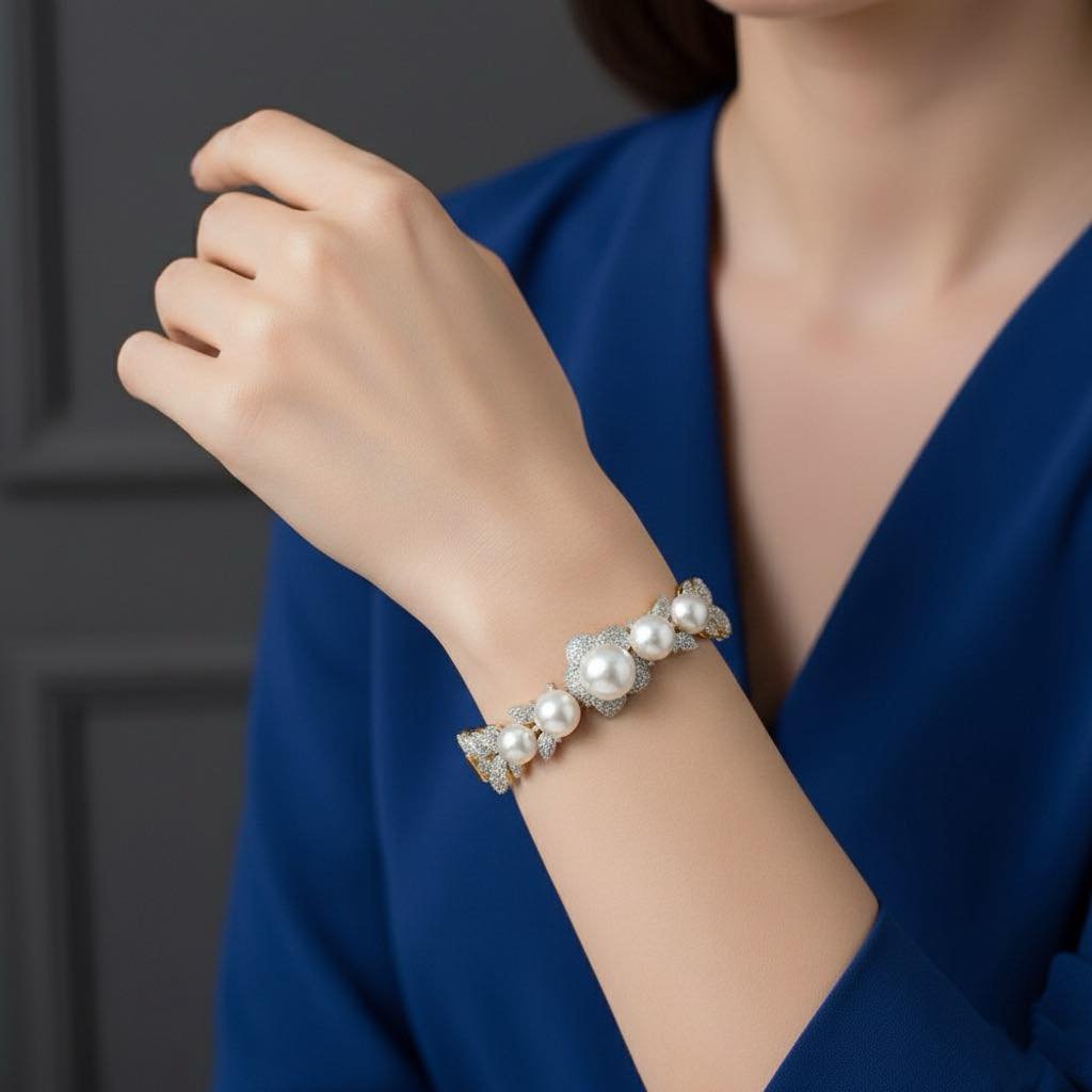 สร้อยข้อมือไข่มุกแนบอุรา ประดับพลอยแท้ ยาว 7.5"
