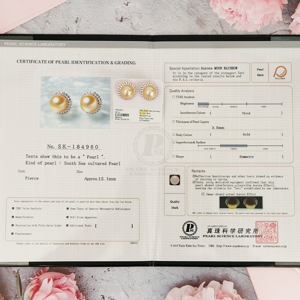 18K Gold (3.30g.), White Zircon (3.60ct.) with Certificate of Pearl Identification & Grading No. SK-184960