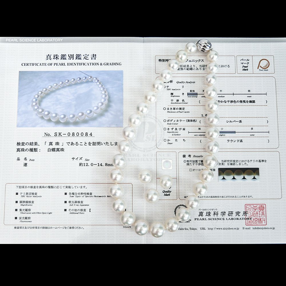 Only Strand Pearls with Certificate of Pearl Identification & Grading No. SK-080084 with Undrilled White South Sea Trio Pearls