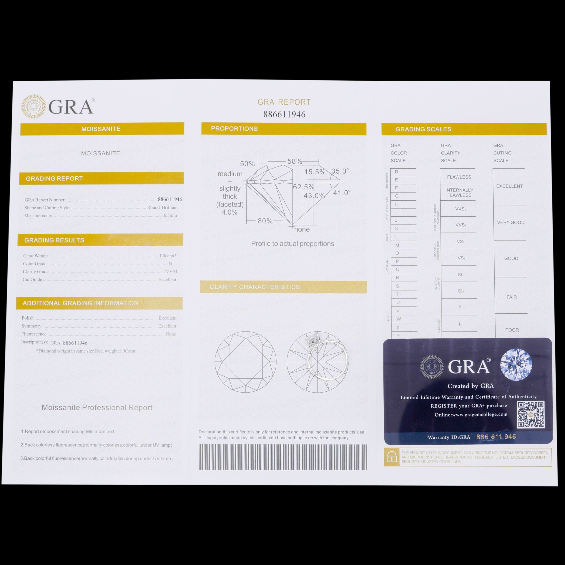 925 Sterling Silver, with Gemological Research Association (GRA) Report No. 886611946