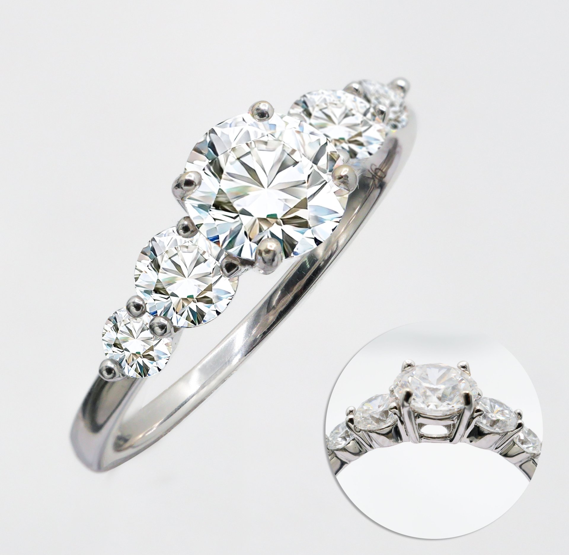 (IGI) 6.53 - 6.56 x 3.96 mm, Laboratory Grown Diamond (Round Brilliant, HPHT, 1.04 ct, D, VVS 2), Laboratory Grown Diamond (0.77 ct.), Five Stones Diamond Ring