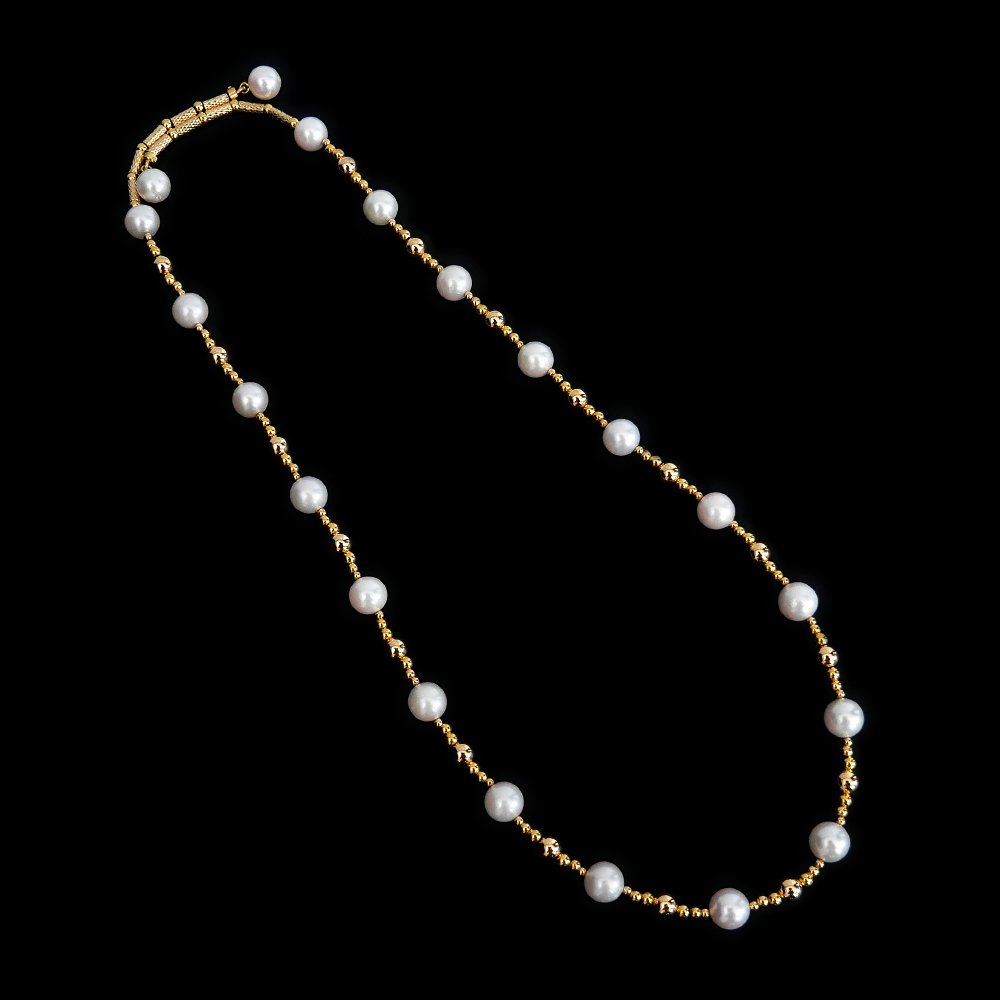 18K Yellow Gold (5.3g.), Alternating Sizes Beads, Tube Magnet Clasp